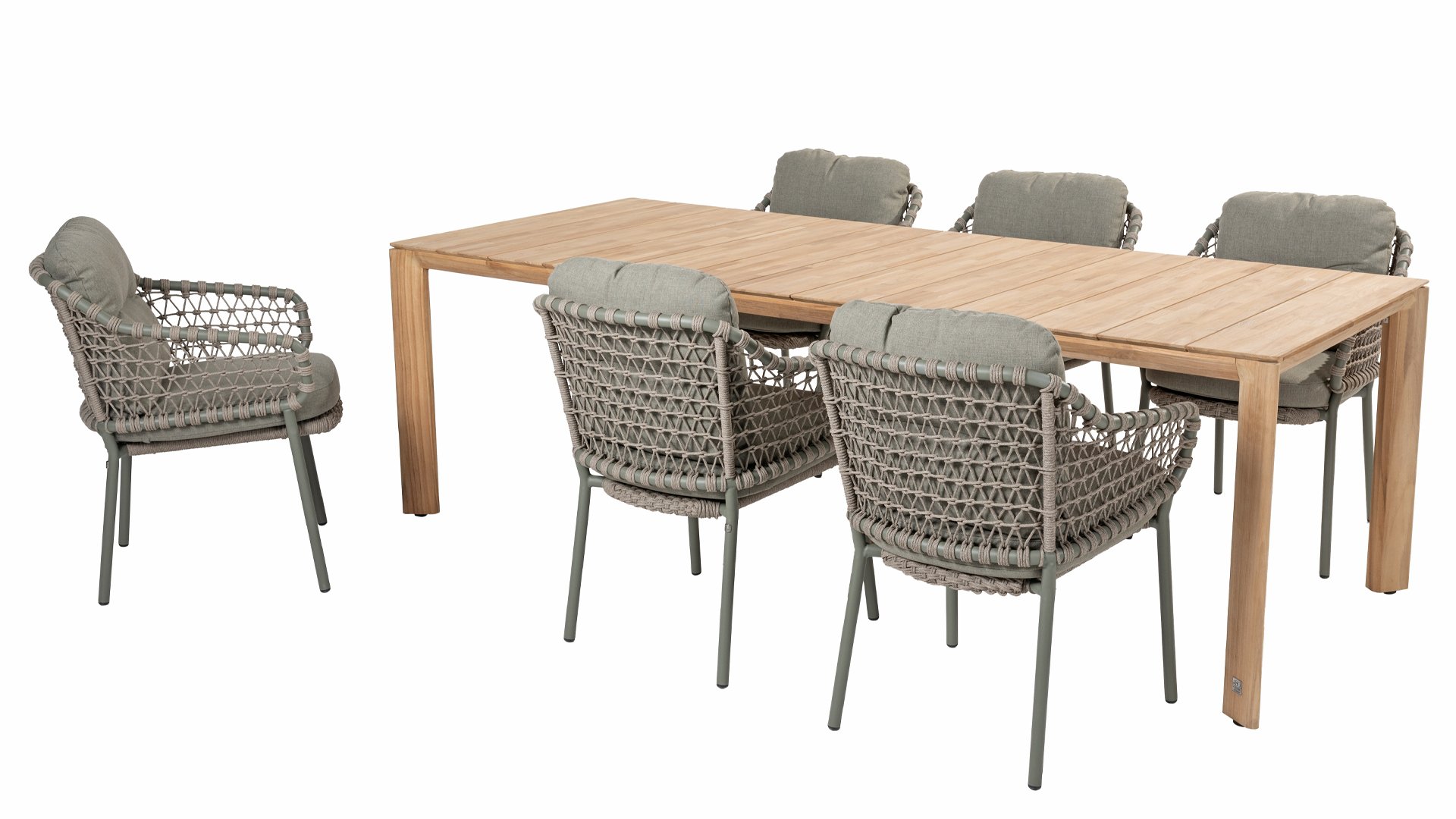 Juras natürliche Schönheit Das 4 Seasons Outdoor Jura Olive kombiniert Olivtöne mit der gedämpften Taupe-Farbe des geknoteten Seils. Schön auf einem Teakholztisch und man kann ihn auch stapeln. Nehmen Sie Platz und genießen Sie. Erleben Sie die perfekte Kombination aus Komfort, natürlicher Optik und modernem Design mit dem 4SO Jura stapelbaren Esszimmerstuhl Olive. Dieser Stuhl wird mit Kissen geliefert. Der Jura verfügt über ein attraktives olivgrünes Seilgeflecht und einen eleganten olivfarbenen Edelstahlrahmen. Der Jura ist bei uns auch in Anthrazit erhältlich: 4 Seasons Outdoor Jura Anthrazit, exklusiv bei Gartenmöbelrabatt!