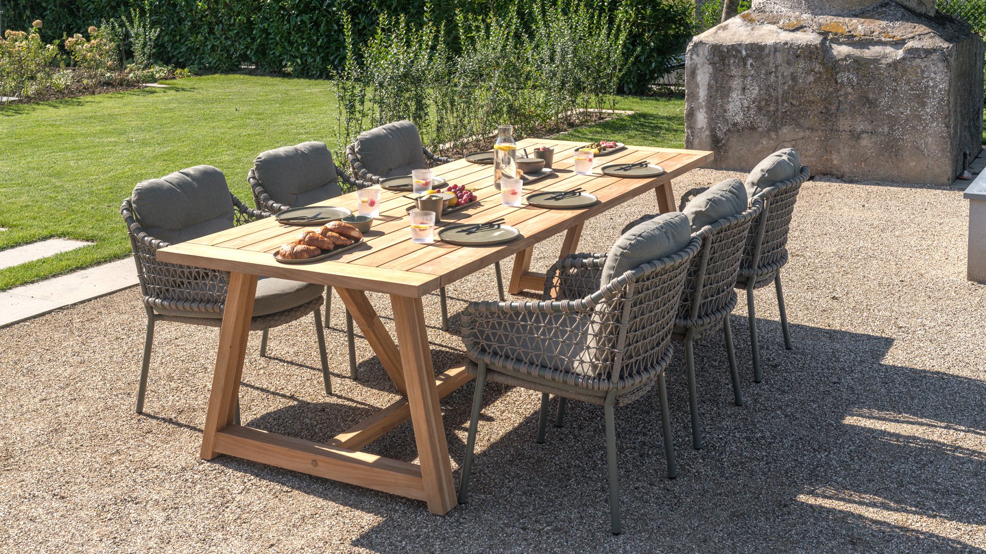 Aluminium ist sehr wartungsfreundlich und leicht. Diese praktischen Möbel sind leicht zu reinigen. Unser Aluminium mit einer festen Pulverbeschichtung ist witterungsbeständig und UV-beständig. Aluminium ist nicht rostanfällig, zeitlos und stilvoll.