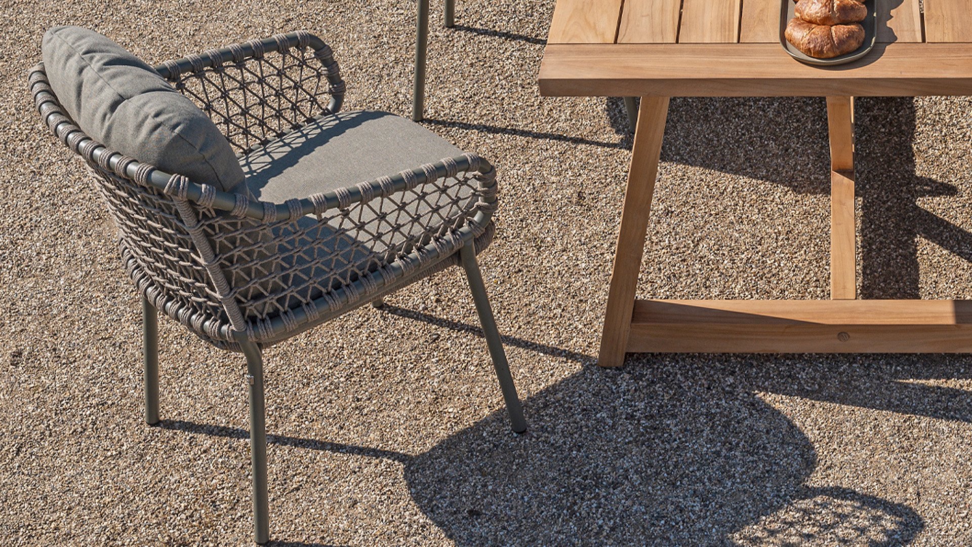 Dieses wunderschöne Material eignet sich perfekt für den Außenbereich, denn Rope ist nicht nur eine normale Spitze, an der Sie Ihre Schuhe binden können. Unsere runden Fäden sind mit einem Kunststoffkern versehen. Diese Basis aus Polypropylen sorgt dafür, dass sich das Rope minimal dehnt und sie nimmt außerdem keine Feuchtigkeit auf. Die Umhüllung besteht aus Acrylstoff, der mit dem wetterfesten Stoff unserer Gartenkissen vergleichbar ist. Diese Umhüllung fühlt sich weich an und ist sehr wasserabweisend, UV-beständig und farbecht. Die flachen Rope-Varianten besitzen den gleichen wetterfesten Materialmix, doch das Polypropylen-Material wurde hier mit dem Acryl-Stoff verwebt. Durch diese Technik besitzt das flache Rope die gleichen Eigenschaften, hat jedoch eine ganz andere Ausstrahlung.