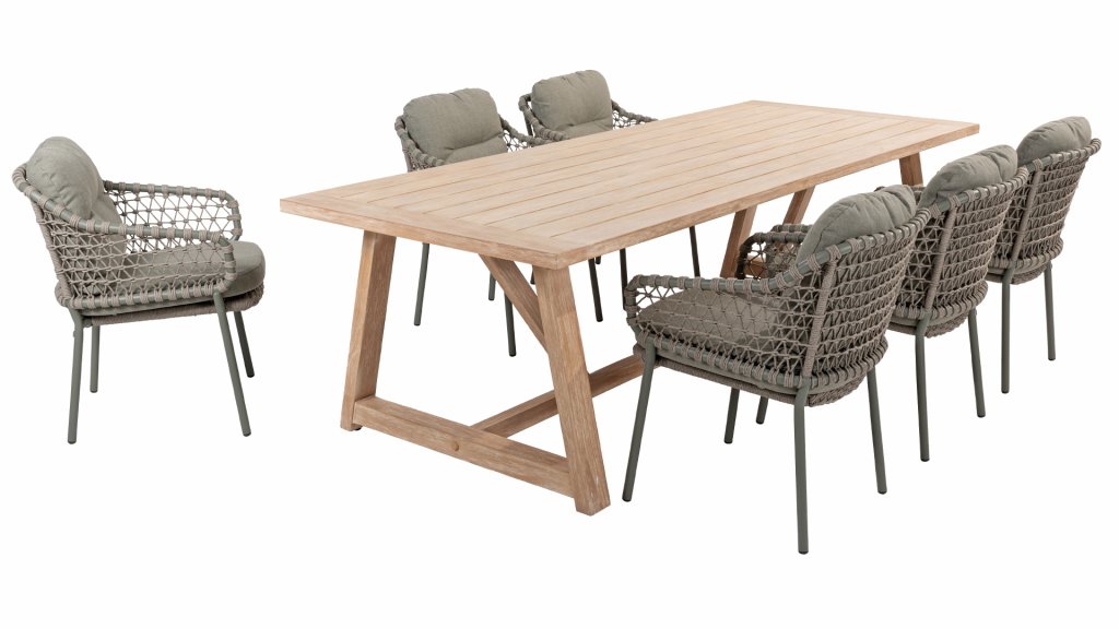 Gartenmöbel aus Teakholz bieten einen atemberaubenden Blick.Teakholz eignet sich besonders gut für den Einsatz im Außenbereich. Es ist resistent gegen Schädlinge und Pilze und widerstandsfähig gegen Sonne, Regen und Schnee. Mit der Zeit entwickelt das Teakholz eine silbergraue Patina. Gartenmöbel aus Teakholz bieten einen atemberaubenden Blick. Darüber hinaus ist es starkes Material und erfordert nur wenig Wartung. Wer die ursprüngliche Farbe des Teakholzes bevorzugt, kann durch regelmäßiges benutzen unser Pflegemittel ganz einfach das Vergrauen des Holzes verhindern.Darüber hinaus können Sie Teak mit grüner Seife reinigen. Durch Temperaturunterschiede und durch den Wechsel von Feuchtigkeit und Trockenheit können kleine Haarrisse entstehen. Es ist üblich, dass Man in dies Unvollkommenheiten findet, diese Unregelmäßigkeiten sind kennzeichnend für dieses Produkt. Diese Unregelmäßigkeiten können nie einen Anlass zu Reklamation, Garantie oder Claim formen. Es betrifft eine Unterschrift von Originalität! Wir gewähren Garantie auf alle Produktions- und Konstruktionsfehler. Die Wirkung von Teakholz ist nicht enthalten. Wenn Sie sich für Teakholz entscheiden, erwarten wir, dass Sie diese Eigenschaften zu schätzen wissen. Eventuell auftretende Haarrisse, Äste im Teakholz und raue Oberflächen im Laufe der Zeit fallen nicht unter unsere Garantie. Diese Eigenschaften verleihen dem Teakholz seinen eigenen Charakter und sind Teil der Optik. Seien Sie vorsichtig mit einem Blumentopf oder einer Vase auf Ihrem Gartentisch aus Teakholz, da dies zu hartnäckigen Kreisen oder Farbunterschieden führen kann.