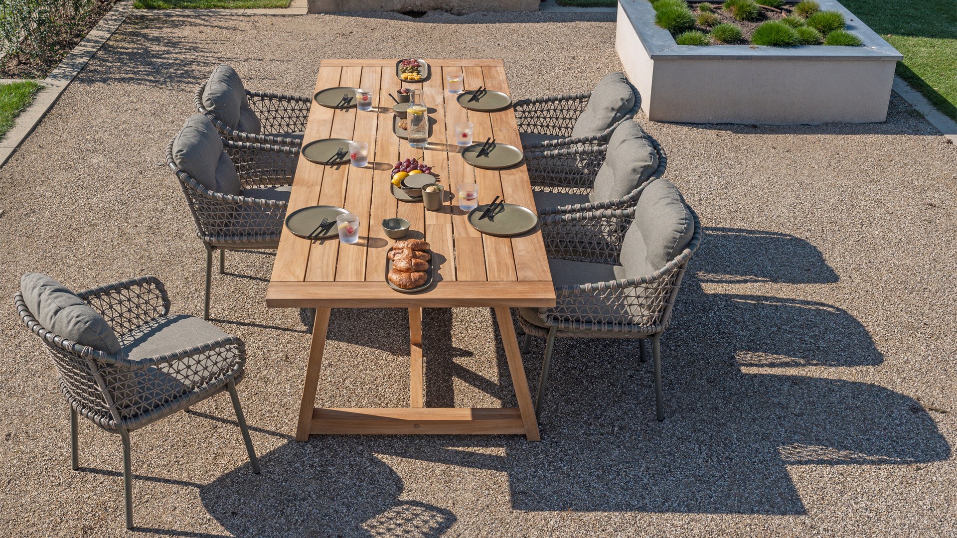 Aluminium ist sehr wartungsfreundlich und leicht. Diese praktischen Möbel sind leicht zu reinigen. Unser Aluminium mit einer festen Pulverbeschichtung ist witterungsbeständig und UV-beständig. Aluminium ist nicht rostanfällig, zeitlos und stilvoll.
