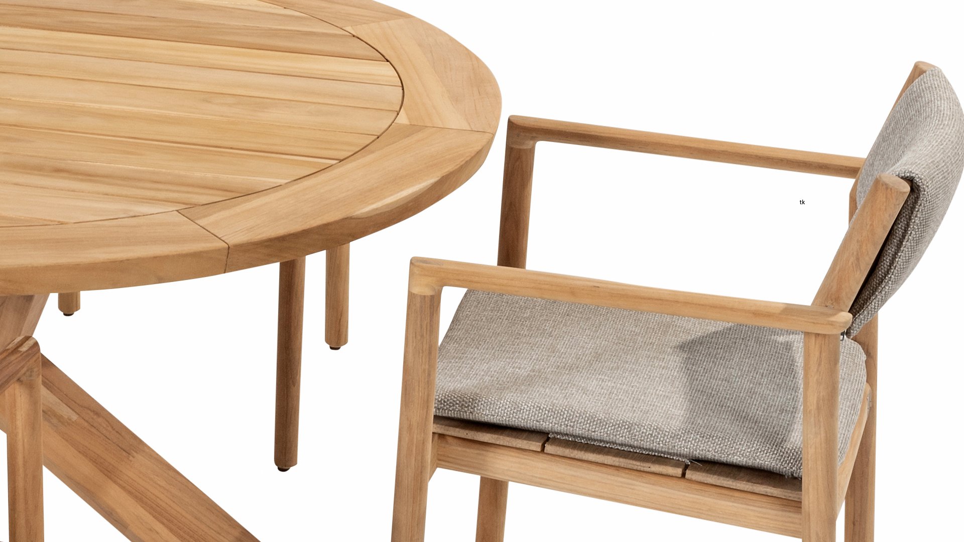 Das Flaggschiff der Kollektion, so kann man diesen Tisch ruhig bezeichnen. Das hochwertige Teakholz in Kombination mit dem schönen Kreuzfuß machen diesen Taste by 4Seasons Prado Ø130cm Tisch zu einem Schmuckstück. Er lässt sich mit nahezu jedem Esszimmerstuhl aus unserer Kollektion kombinieren, sodass für jeden Geschmack etwas dabei ist. Optional kann er mit Prado Lazy Susan kombiniert werden. Die Platte ist sowohl in Teakholz als auch in Keramik erhältlich. Der Prado mit Teakholzplatte ist mit den Tischbeinen Teak, Latte und Anthrazit erhältlich. Sie lieben Keramik? Dann entdecken Sie hier den Prado Keramik mit den Tischbeinen Terre & Latte.