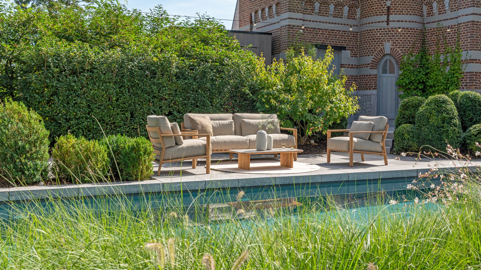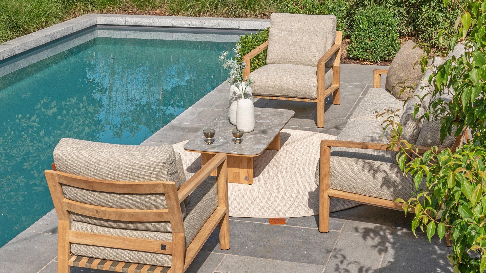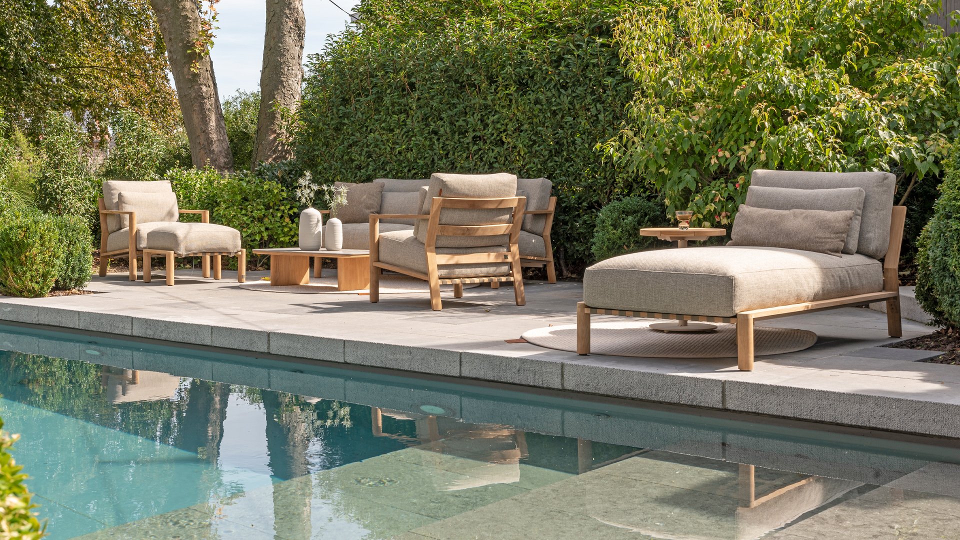 - Natürliche Ausstrahlung: Das Teakholz verleiht der Lounge eine warme und natürliche Ausstrahlung, die perfekt in verschiedene Außenumgebungen passt.