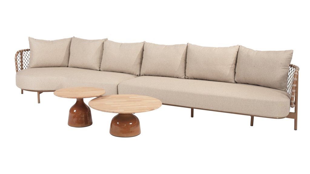 Erleben Sie zeitlosen Luxus mit der Martinique Loungegruppe von 4 Seasons Outdoor. Das auffällige geknotete Rope-Design verleiht einen spielerischen, aber raffinierten Charakter, während der bernsteinfarbene Rahmen Wärme und Ambiente in Ihren Garten oder Ihre Terrasse bringt. Dieses Set ist perfekt für alle, die eine Kombination aus Stil und Komfort suchen.