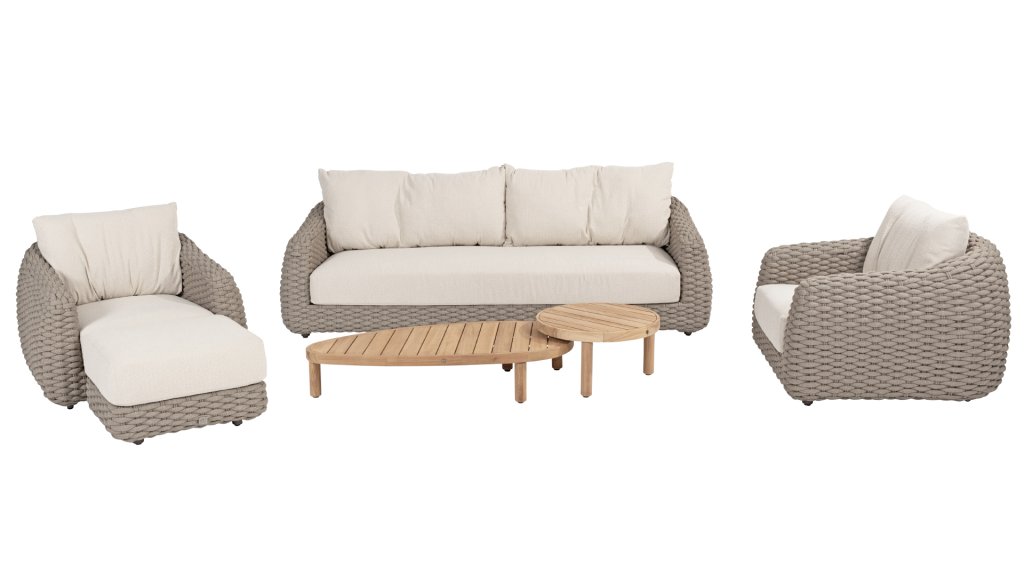 Verbessern Sie Ihr Lounge-Erlebnis mit der Maxime-Lounge von 4 Seasons Outdoor. Dieses Lounge-Set ist eine perfekte Ergänzung für Ihre luxuriöse Terrasse. Die schönen Kurven sind eine Augenweide, während die dicken Loungekissen aus cremefarbenem Bouclé-Stoff für absolute Entspannung sorgen.