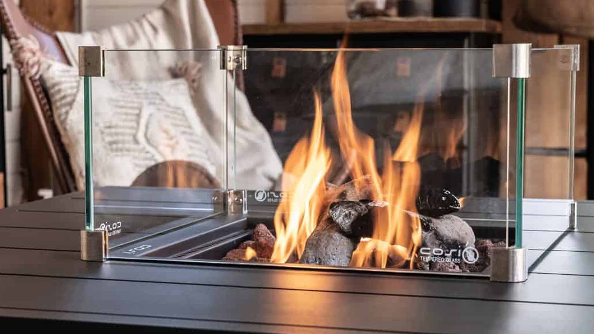 1 x CosiFlow Feuertisch Alu Black 100x100xH50cm