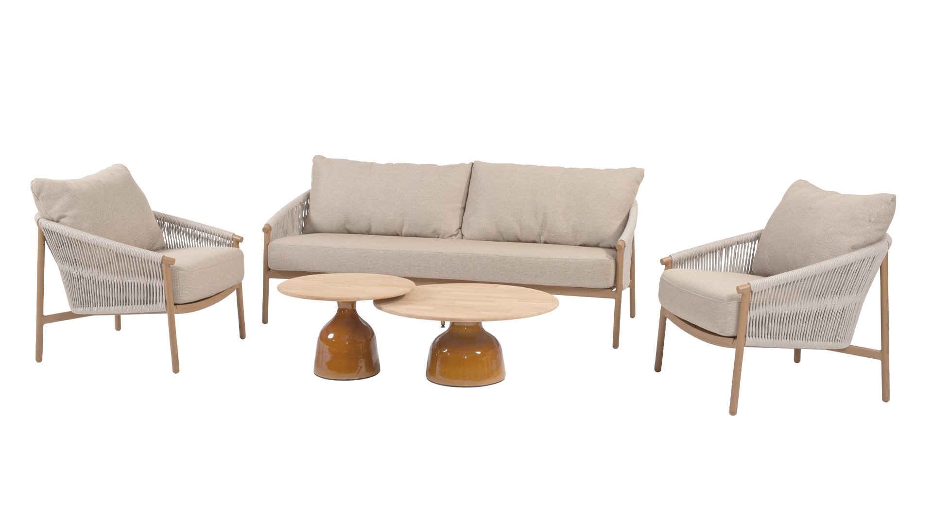 - Top-Qualität Materialien – All-Weather-Kissen, pflegeleichte Gestelle und hochwertiges Seil (Rope) sorgen dafür, dass Ihr Set jahrelang schön bleibt.