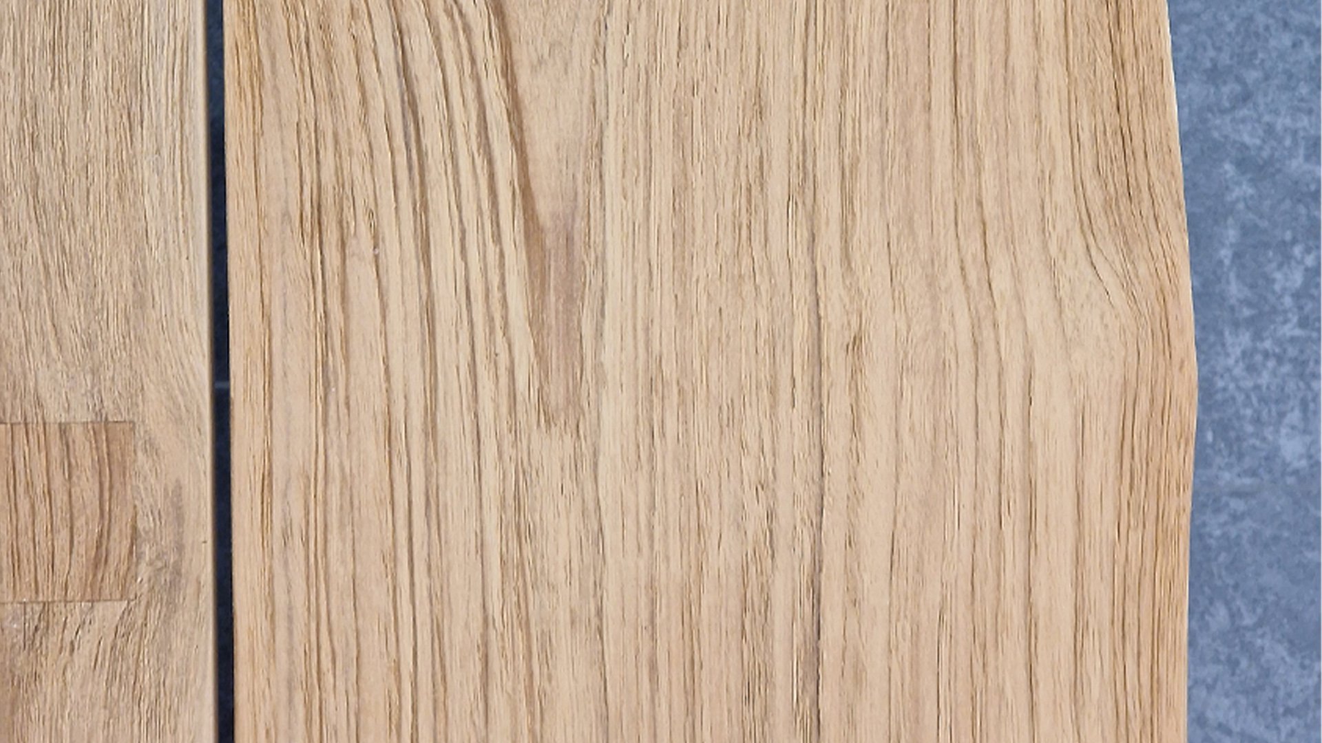 Die 4Seasons Robusto Teakplatte hat ein leicht rustikales und grobes Finish. Der Abschluss an der Längsseite fällt sofort ins Auge. Diese sind nicht gerade verarbeitet, sondern haben ihre ursprüngliche Form behalten (Baumkante) und haben eine Art Baumstamm-Finish. Dadurch gleicht kein Tisch dem anderen und jede Tischplatte hat ihren eigenen einzigartigen Look.