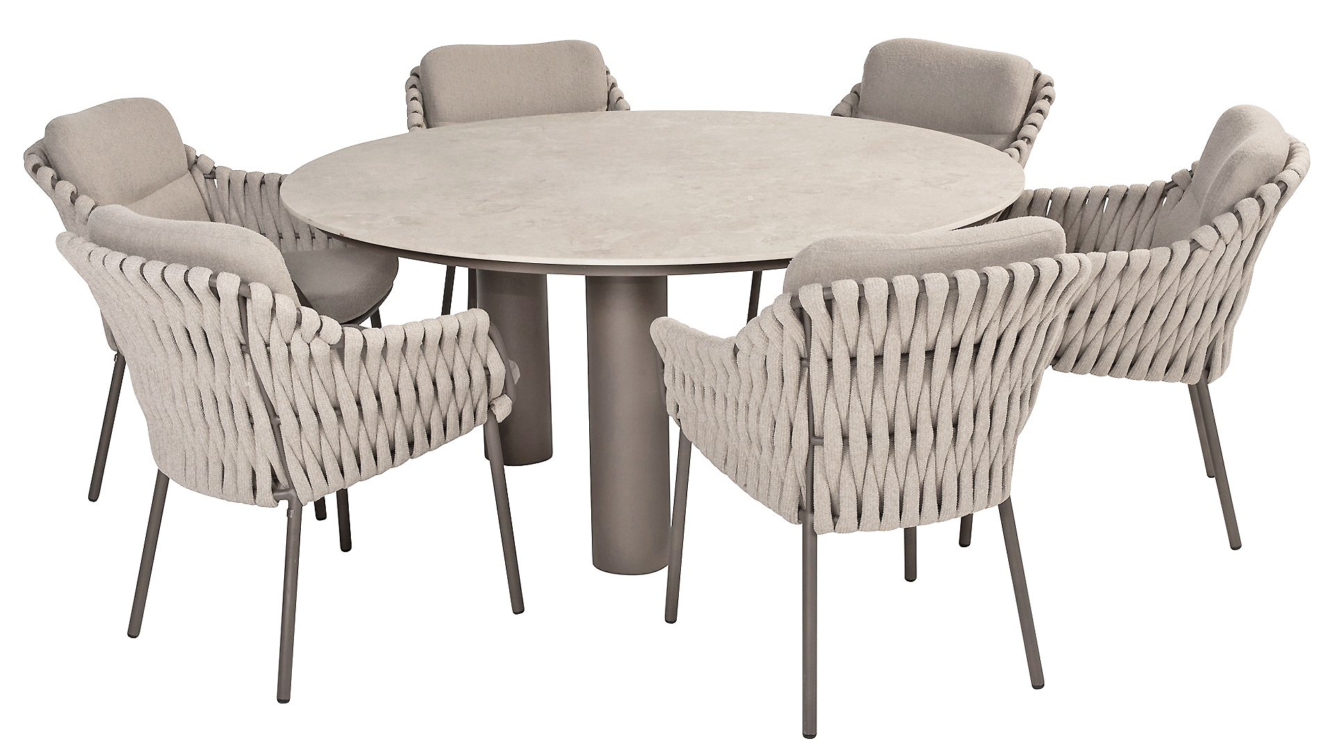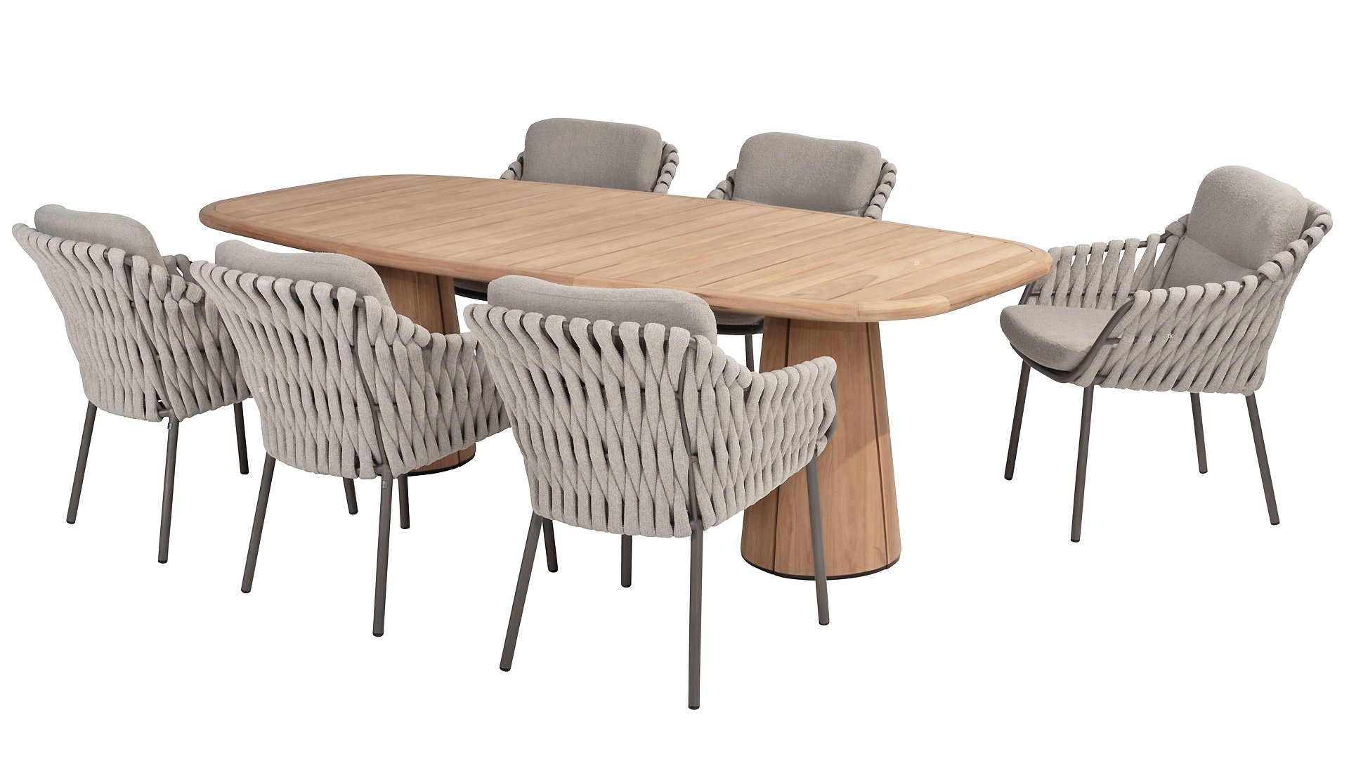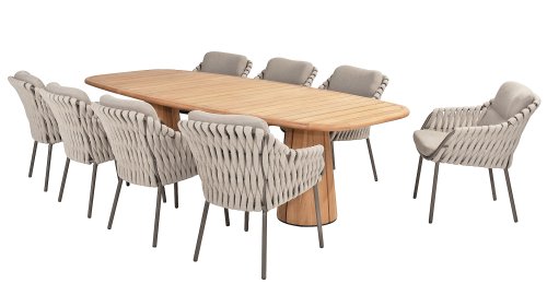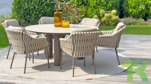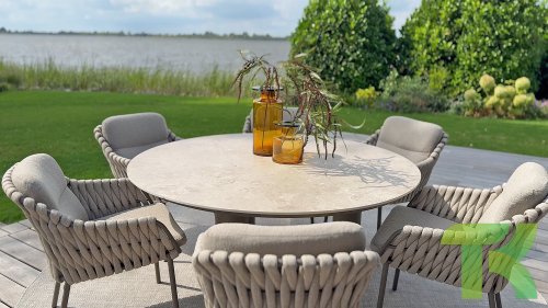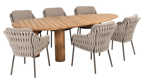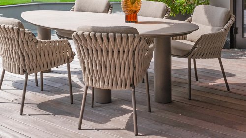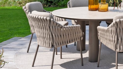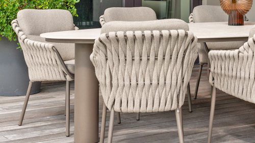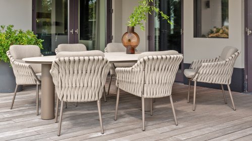 Machen Sie sich mit dem 4 Seasons Outdoor Montera Dining vertraut. Hergestellt mit einem Edelstahlrahmen in der neuen Farbe Terre. Das Seilgewebe sowie die Kissen sind in der Farbe Clay gehalten, wobei das Polster der Kissen Boucle für die Abwechslung ist! Dies macht es nicht nur schick, sondern auch schön, trendy und verspielt.