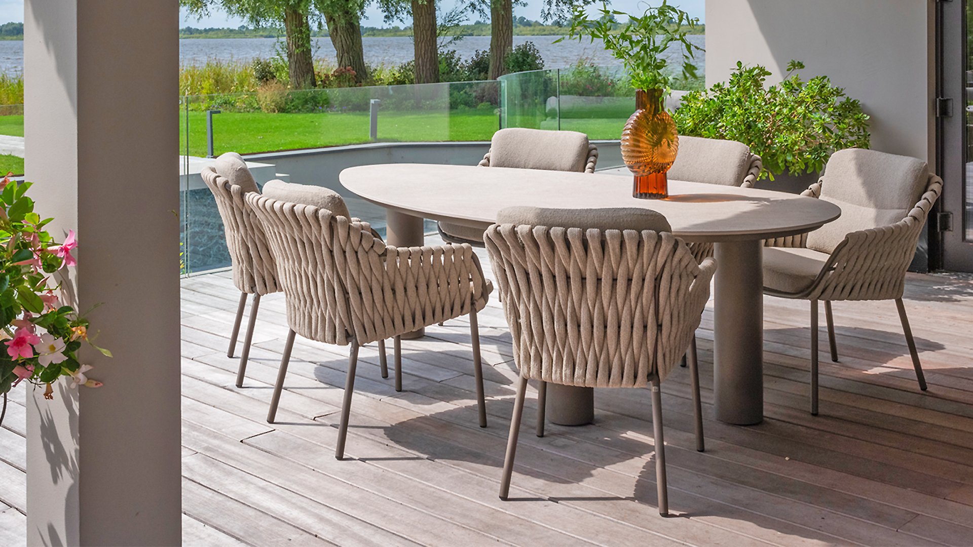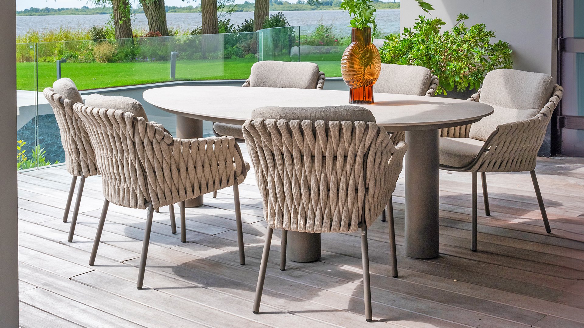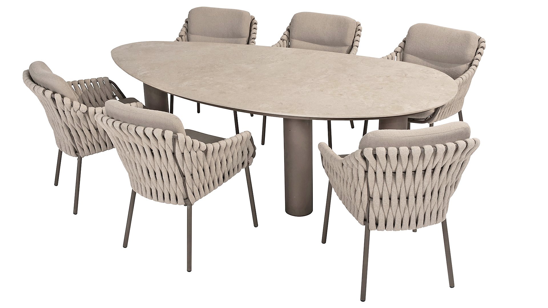 Machen Sie sich mit dem 4 Seasons Outdoor Montera Dining vertraut. Hergestellt mit einem Edelstahlrahmen in der neuen Farbe Terre. Das Seilgewebe sowie die Kissen sind in der Farbe Clay gehalten, wobei das Polster der Kissen Boucle für die Abwechslung ist! Dies macht es nicht nur schick, sondern auch schön, trendy und verspielt.