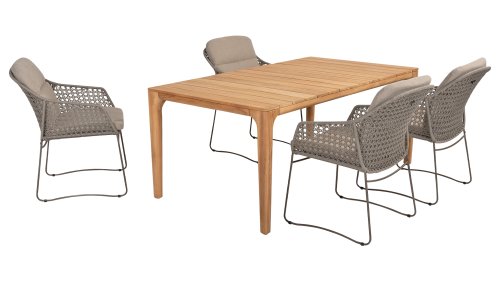 Gartenmöbel aus Teakholz bieten einen atemberaubenden Blick.Teakholz eignet sich besonders gut für den Einsatz im Außenbereich. Es ist resistent gegen Schädlinge und Pilze und widerstandsfähig gegen Sonne, Regen und Schnee. Mit der Zeit entwickelt das Teakholz eine silbergraue Patina. Gartenmöbel aus Teakholz bieten einen atemberaubenden Blick. Darüber hinaus ist es starkes Material und erfordert nur wenig Wartung. Wer die ursprüngliche Farbe des Teakholzes bevorzugt, kann durch regelmäßiges benutzen unser Pflegemittel ganz einfach das Vergrauen des Holzes verhindern.Darüber hinaus können Sie Teak mit grüner Seife reinigen. Durch Temperaturunterschiede und durch den Wechsel von Feuchtigkeit und Trockenheit können kleine Haarrisse entstehen. Es ist üblich, dass Man in dies Unvollkommenheiten findet, diese Unregelmäßigkeiten sind kennzeichnend für dieses Produkt. Diese Unregelmäßigkeiten können nie einen Anlass zu Reklamation, Garantie oder Claim formen. Es betrifft eine Unterschrift von Originalität!  Wir gewähren Garantie auf alle Produktions- und Konstruktionsfehler. Die Wirkung von Teakholz ist nicht enthalten. Wenn Sie sich für Teakholz entscheiden, erwarten wir, dass Sie diese Eigenschaften zu schätzen wissen. Eventuell auftretende Haarrisse, Äste im Teakholz und raue Oberflächen im Laufe der Zeit fallen nicht unter unsere Garantie. Diese Eigenschaften verleihen dem Teakholz seinen eigenen Charakter und sind Teil der Optik. Seien Sie vorsichtig mit einem Blumentopf oder einer Vase auf Ihrem Gartentisch aus Teakholz, da dies zu hartnäckigen Kreisen oder Farbunterschieden führen kann.