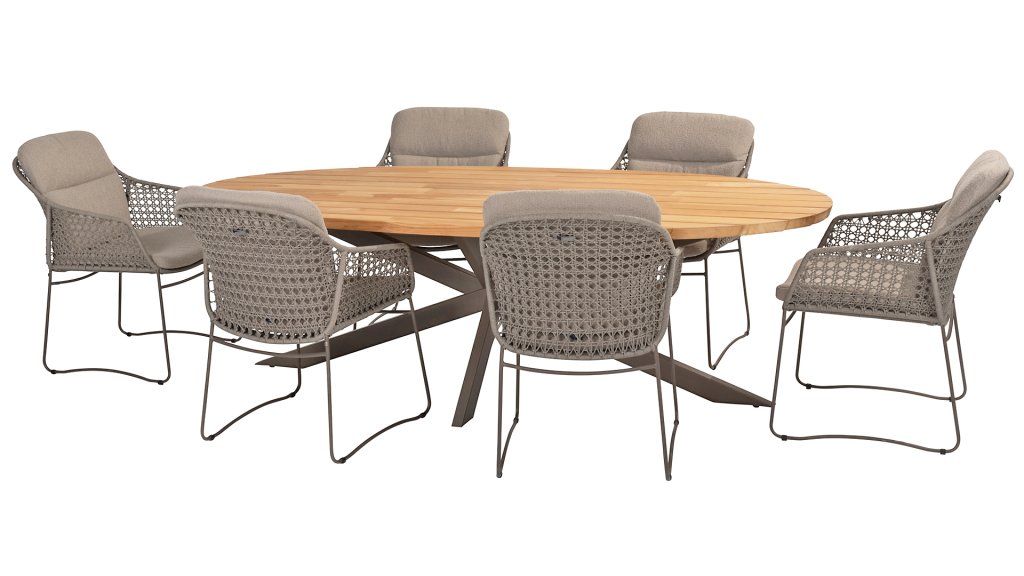 1 x Taste Prado Ellips Tisch 240x115cm Teak-Alu Terre