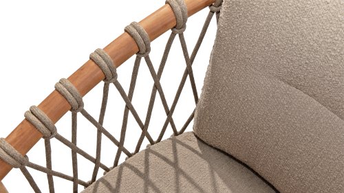 • Modernes Design: Das Design des Nora-Stuhls mit Seilzug und Bouclé-Bezug verleiht ihm ein zeitgemäßes Aussehen, das perfekt in jeden Garten oder auf eine Terrasse passt.