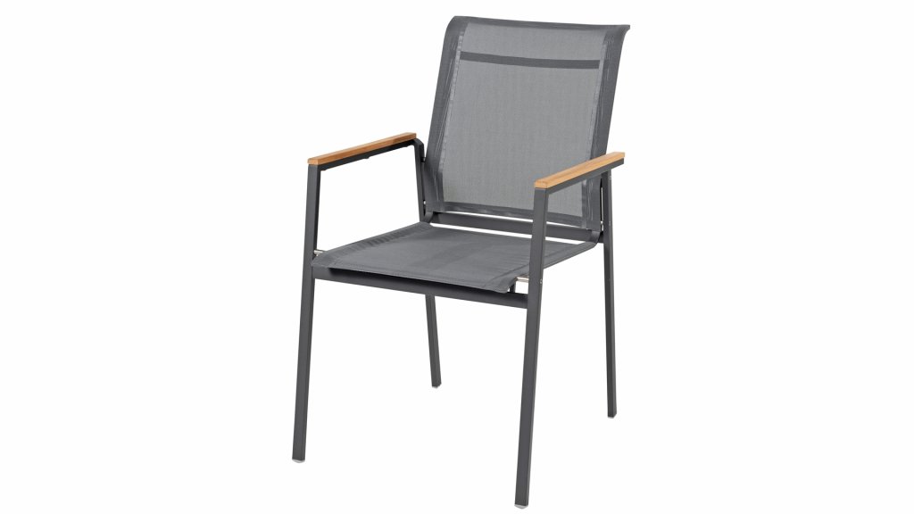 Der stapelbare Stuhl aus der 4 Seasons Outdoor Passion-Serie ist die ideale Kombination aus hochwertigem anthrazitfarbenem Pulverbeschichtetes R.V.S., Twitchell Textilene und warmem Teakholz. Durch diese Interaktion der verschiedenen Materialien lassen sich diese Stühle vielseitig mit verschiedenen Tischen kombinieren. Wenn Sie ein modernes und funktionales Design suchen, werden die stapelbaren Stühle von 4 Seasons Outdoor Passion sicherlich Ihren Bedürfnissen entsprechen. Der starke und minimalistische Rahmen verfügt über eine Textilene-Sitzfläche und hohe Rückenlehne. Lassen Sie sie das ganze Jahr über draußen stehen oder stapeln Sie sie einfach und verstauen Sie sie.