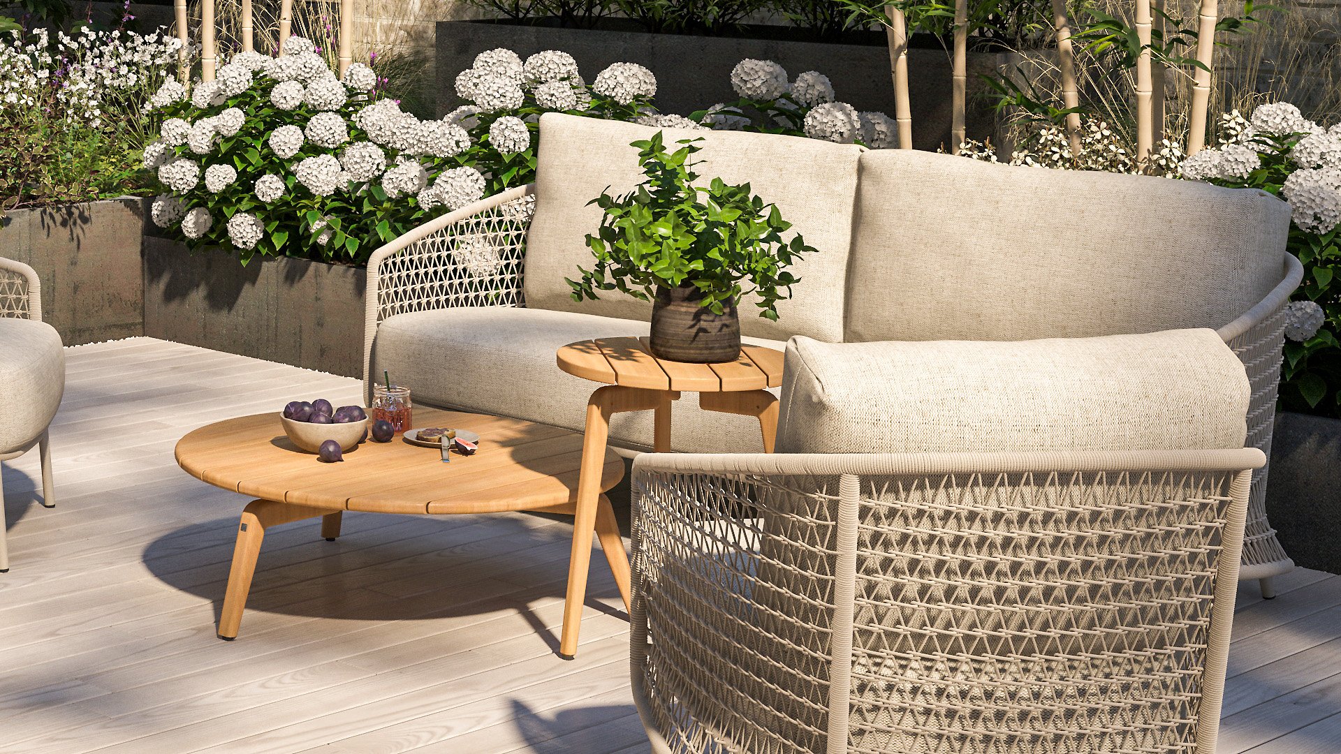 Ein wahres Meisterwerk komponieren. Es erfordert Kreativität, etwas völlig Neues zu bringen. Und genau das hat 4 Seasons Outdoor getan: Die Latte-Farbe des 4SO Puccini spielt die Hauptrolle sowohl im Rahmen, den Kissen als auch im überraschenden Seil-Muster.
