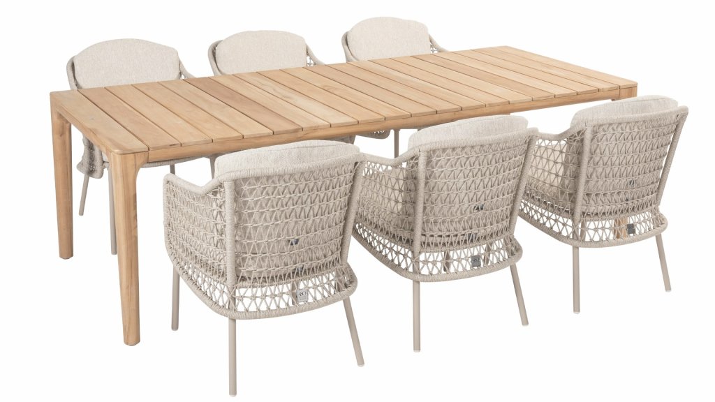 Gartenmöbel aus Teakholz bieten einen atemberaubenden Blick.Teakholz eignet sich besonders gut für den Einsatz im Außenbereich. Es ist resistent gegen Schädlinge und Pilze und widerstandsfähig gegen Sonne, Regen und Schnee. Mit der Zeit entwickelt das Teakholz eine silbergraue Patina. Gartenmöbel aus Teakholz bieten einen atemberaubenden Blick. Darüber hinaus ist es starkes Material und erfordert nur wenig Wartung. Wer die ursprüngliche Farbe des Teakholzes bevorzugt, kann durch regelmäßiges benutzen unser Pflegemittel ganz einfach das Vergrauen des Holzes verhindern.Darüber hinaus können Sie Teak mit grüner Seife reinigen. Durch Temperaturunterschiede und durch den Wechsel von Feuchtigkeit und Trockenheit können kleine Haarrisse entstehen. Es ist üblich, dass Man in dies Unvollkommenheiten findet, diese Unregelmäßigkeiten sind kennzeichnend für dieses Produkt. Diese Unregelmäßigkeiten können nie einen Anlass zu Reklamation, Garantie oder Claim formen. Es betrifft eine Unterschrift von Originalität! Wir gewähren Garantie auf alle Produktions- und Konstruktionsfehler. Die Wirkung von Teakholz ist nicht enthalten. Wenn Sie sich für Teakholz entscheiden, erwarten wir, dass Sie diese Eigenschaften zu schätzen wissen. Eventuell auftretende Haarrisse, Äste im Teakholz und raue Oberflächen im Laufe der Zeit fallen nicht unter unsere Garantie. Diese Eigenschaften verleihen dem Teakholz seinen eigenen Charakter und sind Teil der Optik. Seien Sie vorsichtig mit einem Blumentopf oder einer Vase auf Ihrem Gartentisch aus Teakholz, da dies zu hartnäckigen Kreisen oder Farbunterschieden führen kann.