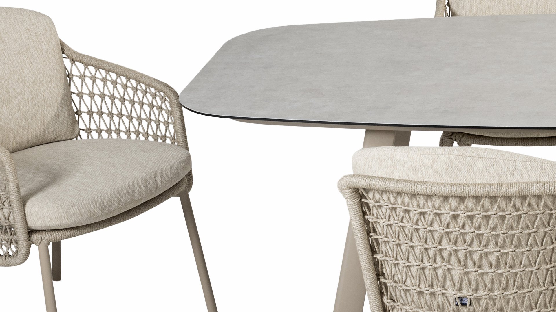 Ein wahres Meisterwerk komponieren. Um etwas völlig Neues hervorzubringen, ist Kreativität gefragt. Und genau das hat 4 Seasons Outdoor geschafft: Die Latte-Farbe von 4SO Puccini spielt das Solo im Gestell, in den Kissen und im überraschenden Seilmuster. Das Puccini ist ein komplettes Serie bestehend aus lounge und dining im gleichen Stil: 4 Seasons Outdoor Puccini Gartenmöbelset & 4 Seasons Outdoor Puccini Loungegruppe. So bleiben Sie beim Kombinieren stilvoll. Das Gestell der Puccini-Serie ist in der neuen Farbe Latte pulverbeschichtet. Latte ist eine weiche und natürliche Farbe, ideal, wenn Sie etwas anderes als Grau wünschen.
