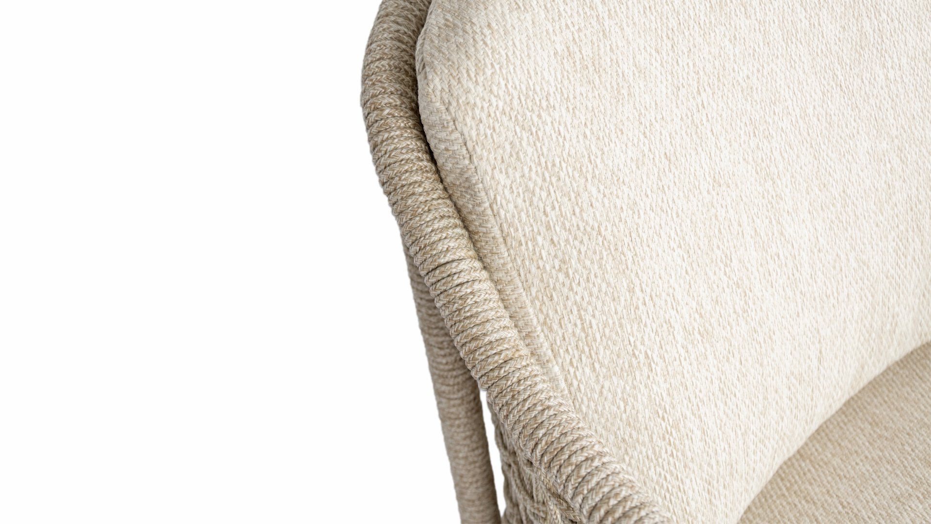 Dieses wunderschöne Material eignet sich perfekt für den Außenbereich, denn Rope ist nicht nur eine normale Spitze, an der Sie Ihre Schuhe binden können. Unsere runden Fäden sind mit einem Kunststoffkern versehen. Diese Basis aus Polypropylen sorgt dafür, dass sich das Rope minimal dehnt und sie nimmt außerdem keine Feuchtigkeit auf. Die Umhüllung besteht aus Acrylstoff, der mit dem wetterfesten Stoff unserer Gartenkissen vergleichbar ist. Diese Umhüllung fühlt sich weich an und ist sehr wasserabweisend, UV-beständig und farbecht. Die flachen Rope-Varianten besitzen den gleichen wetterfesten Materialmix, doch das Polypropylen-Material wurde hier mit dem Acryl-Stoff verwebt. Durch diese Technik besitzt das flache Rope die gleichen Eigenschaften, hat jedoch eine ganz andere Ausstrahlung.