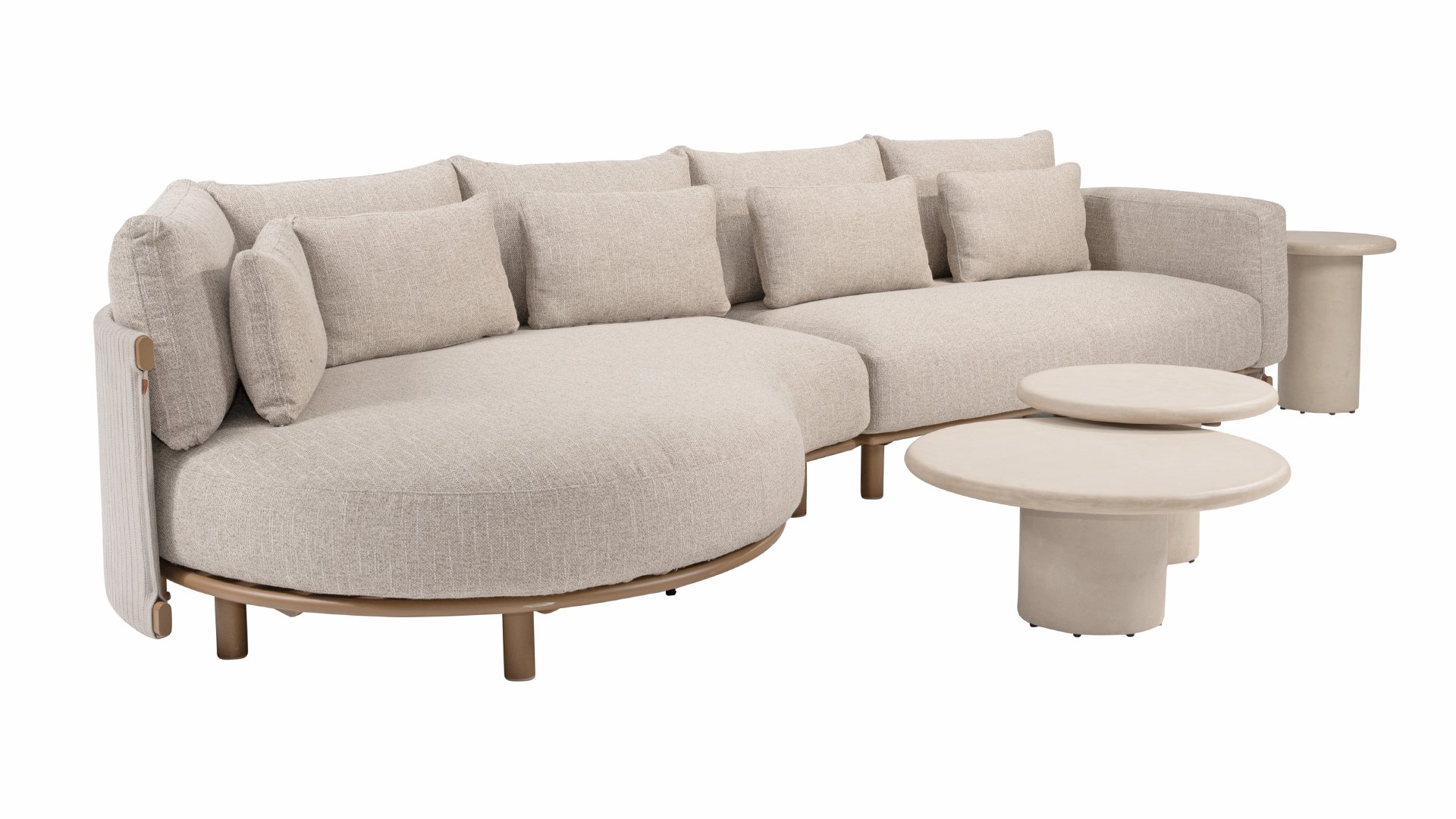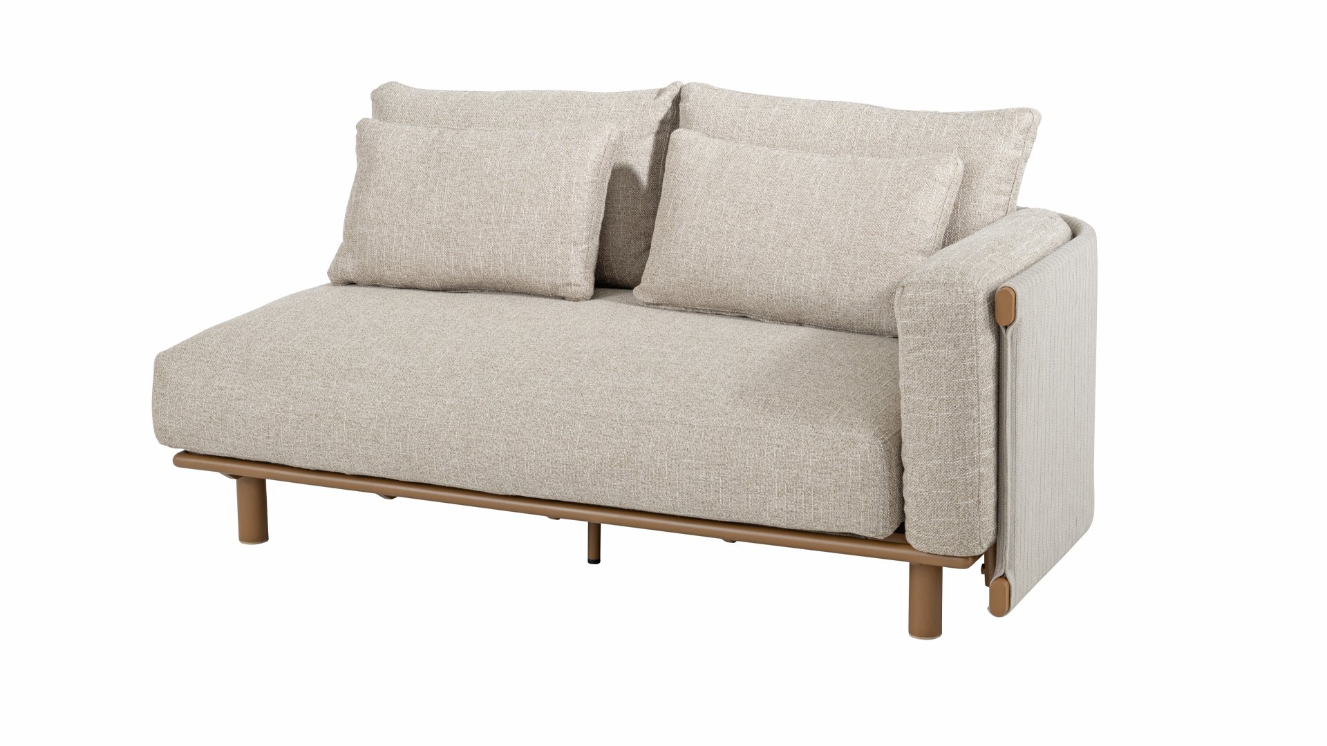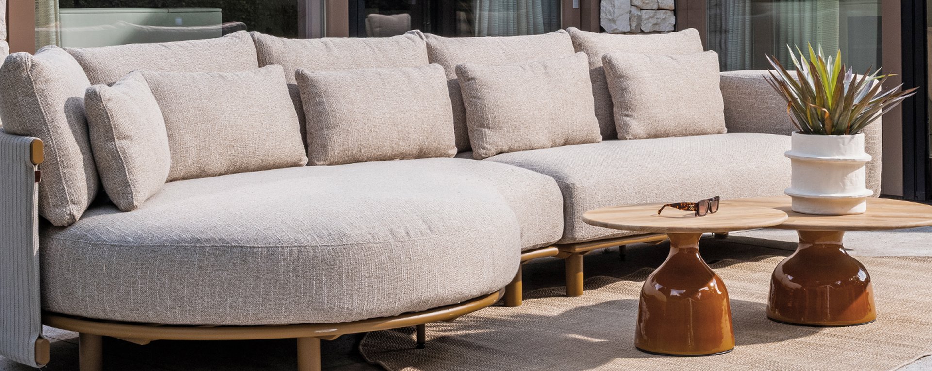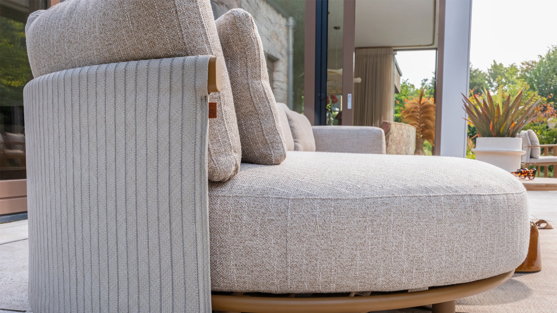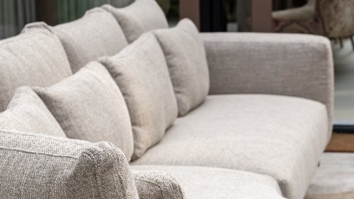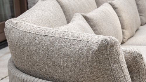 Das sandfarbene Rope ist vollständig gepolstert und mit außergewöhnlicher Handwerkskunst verarbeitet, was dem Safina Lounge-Set eine warme und luxuriöse Ausstrahlung verleiht. Der amber Aluminiumrahmen bildet eine moderne, robuste und pflegeleichte Basis. Zusammen mit den sandfarbenen Kissen – wetterfest, komfortabel und stilvoll – entsteht ein harmonisches und hochwertiges Gesamtbild, das perfekt zu jedem Garten oder jeder Terrasse passt.