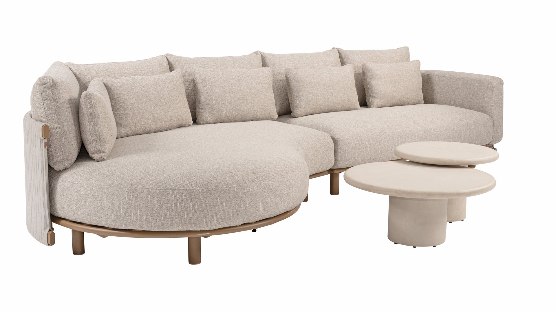 Das sandfarbene Rope ist vollständig gepolstert und mit außergewöhnlicher Handwerkskunst verarbeitet, was dem Safina Lounge-Set eine warme und luxuriöse Ausstrahlung verleiht. Der amber Aluminiumrahmen bildet eine moderne, robuste und pflegeleichte Basis. Zusammen mit den sandfarbenen Kissen – wetterfest, komfortabel und stilvoll – entsteht ein harmonisches und hochwertiges Gesamtbild, das perfekt zu jedem Garten oder jeder Terrasse passt.