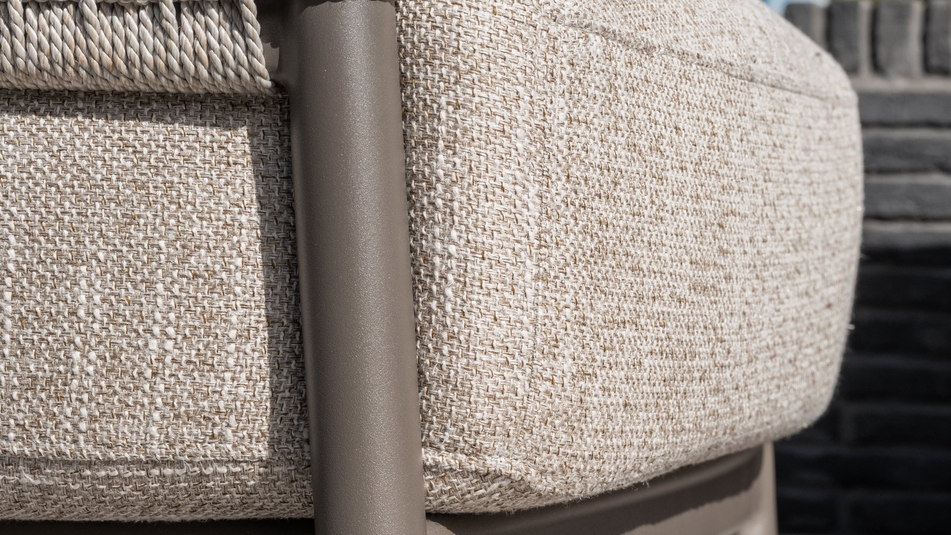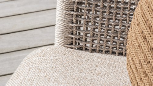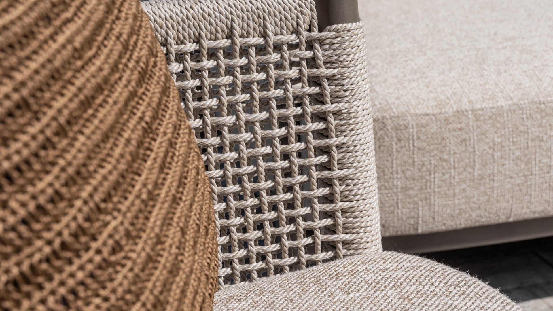 Ein von der Savanne inspiriertes Design Der Name Savanne kommt nicht von ungefähr. Das Lounge-Set ist in warmen, natürlichen Farbtönen gehalten, die an die weiten afrikanischen Savannen erinnern. Der terrakottafarbene Aluminiumrahmen spiegelt die erdigen Farben der Sandflächen bei Sonnenuntergang wider, während das einzigartige Seilknüpfmuster an handwerkliche Strukturen und natürliche Materialien erinnert. Das Ergebnis ist ein Set, das sowohl Ruhe ausstrahlt als auch ein auffälliger Blickfang in jedem Garten ist.