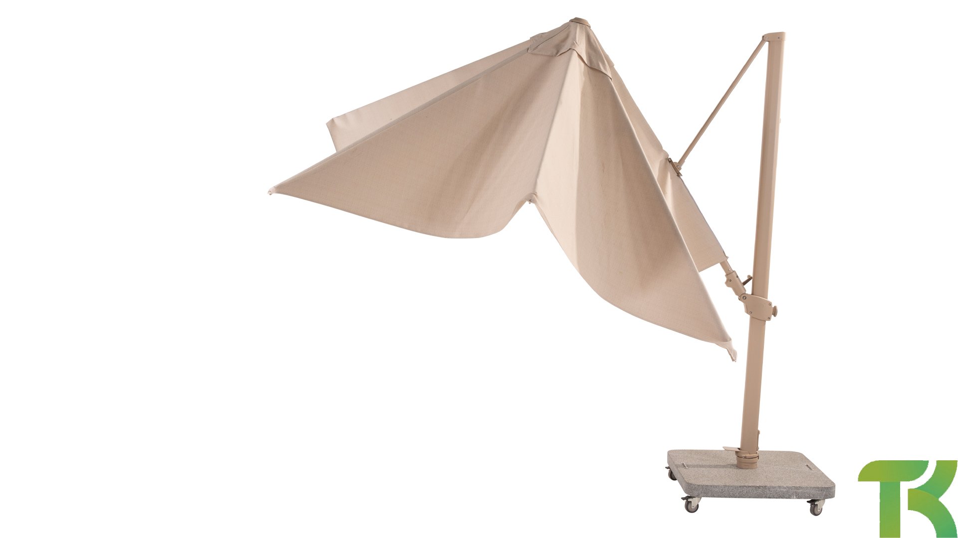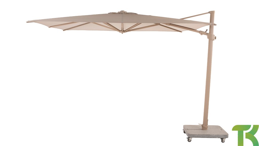 Wenn Sie Räder hinzufügen, kann der Sonnenschirm auch auf Ihrer Terrasse bewegt werden.