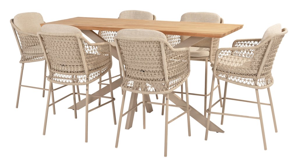 1 x Taste Prado Bartisch 200x70xH105cm Teak-Alu Latte