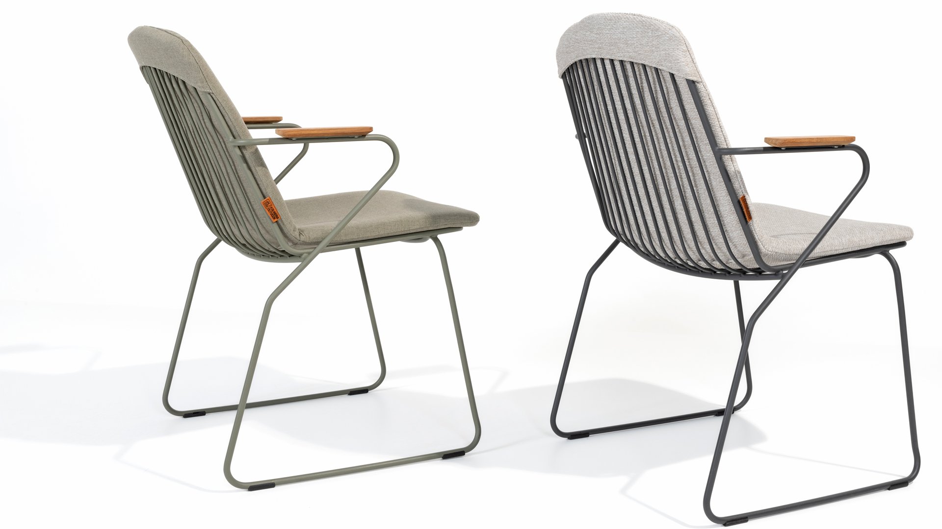 Es gibt nichts Besseres als 4SO Veneto Unique seiner Art, den minimalistischen Veneto-Esszimmerstuhl aus dünnen Edelstahlrohren, erhältlich in den Farben: Anthrazit, Terre und Olive. Ein ergonomisches Design, Armlehnen aus Teakholz und das Kissen, das Sie einfach über die Rückenlehne schieben können. Veneto ist außerdem stapelbar, ein wirklich einzigartiger Esszimmerstuhl.