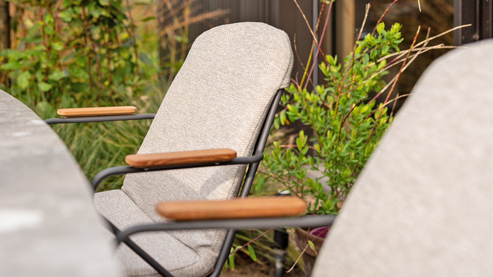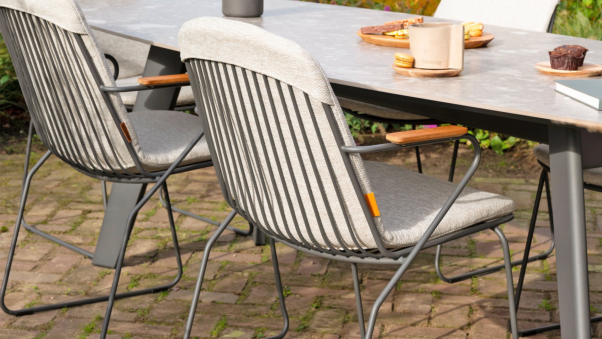 Es gibt nichts wie 4SO Veneto Einzigartig in seiner Art, der minimalistische Veneto Esszimmerstuhl aus dünnen Edelstahlrohren in den Farben Antraciet, Terre & Olive. Ein ergonomisches Design, Teakholzarmlehnen und das Kissen, das Sie leicht über die Rückenlehne schieben. Veneto ist auch stapelbar, wirklich ein Unikat-Esstuhl.