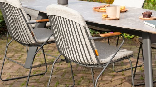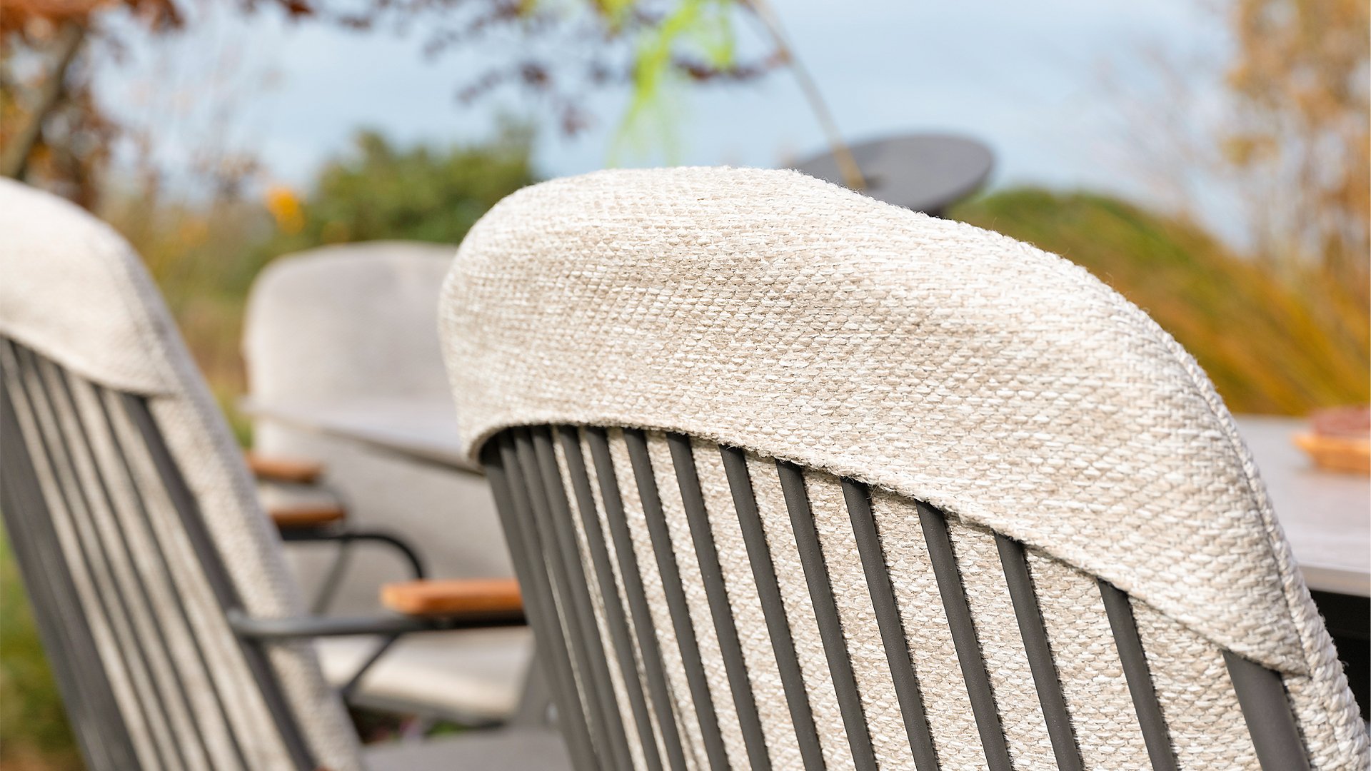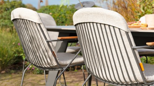 Mit dem 4 Seasons Outdoor Veneto stapelbaren Esszimmerstuhl bringen Sie einen Hauch von Eleganz und Komfort in Ihren Außenbereich. Ein ausgewogenes Design, bei dem Sitz- und Rückenkissen eine Einheit bilden und Sie sie problemlos über den Stuhl schieben. Dieser stilvolle Stuhl hat viel zu bieten: 5 Jahre Garantie, modernes Aussehen, minimalistisches Design, auffälliges Design, wetterfest, inklusive Kissen, stapelbar, pflegeleicht.