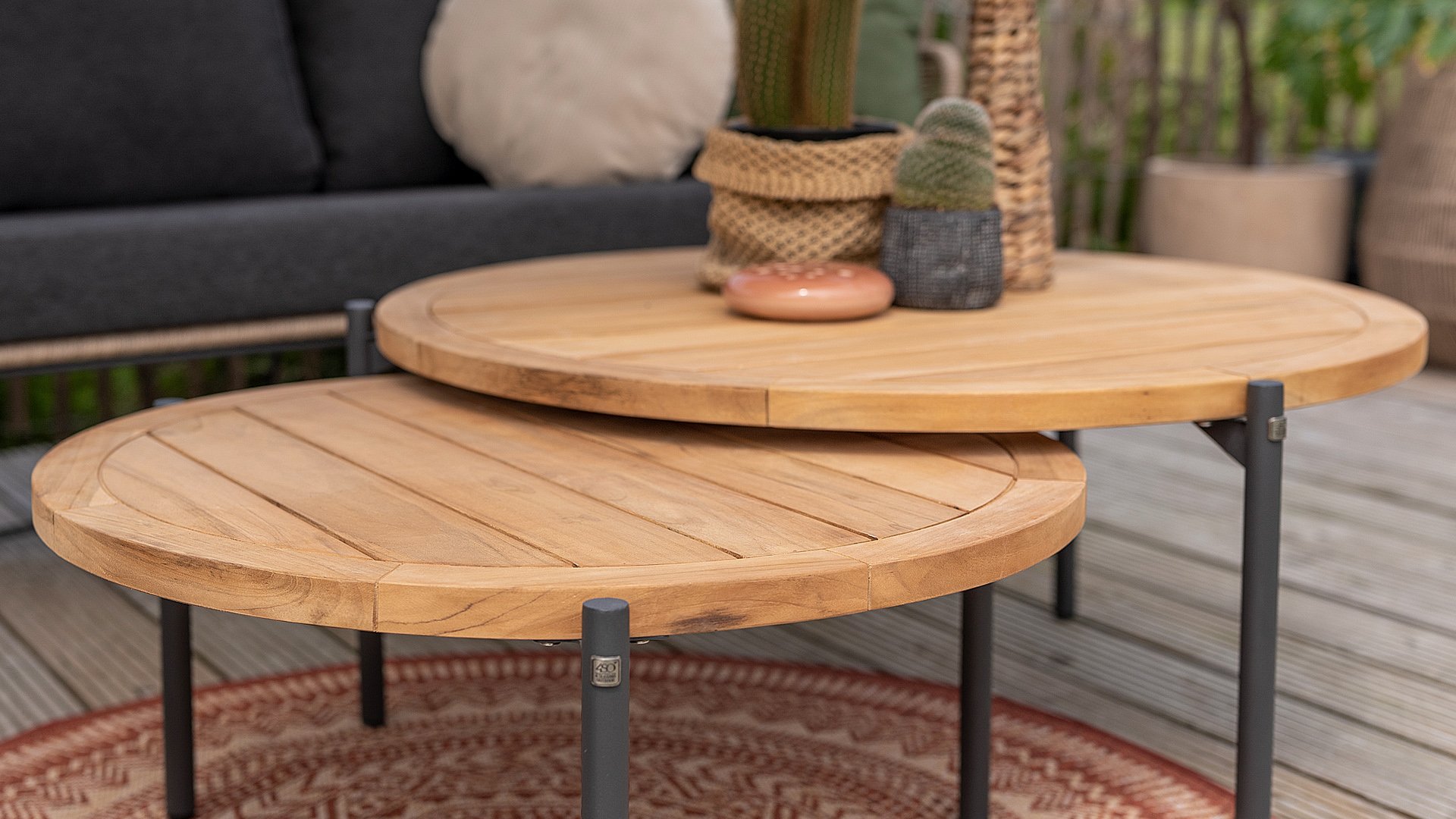 1 x 4Seasons Yoga Kaffeetisch Anthrazit Teak/Alu Ø 73cm