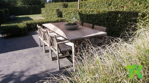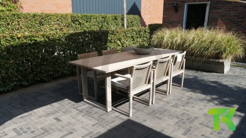 Gartenmöbel aus Teakholz bieten einen atemberaubenden Blick.Teakholz eignet sich besonders gut für den Einsatz im Außenbereich. Es ist resistent gegen Schädlinge und Pilze und widerstandsfähig gegen Sonne, Regen und Schnee. Mit der Zeit entwickelt das Teakholz eine silbergraue Patina. Gartenmöbel aus Teakholz bieten einen atemberaubenden Blick. Darüber hinaus ist es starkes Material und erfordert nur wenig Wartung. Wer die ursprüngliche Farbe des Teakholzes bevorzugt, kann durch regelmäßiges benutzen unser Pflegemittel ganz einfach das Vergrauen des Holzes verhindern.Darüber hinaus können Sie Teak mit grüner Seife reinigen. Durch Temperaturunterschiede und durch den Wechsel von Feuchtigkeit und Trockenheit können kleine Haarrisse entstehen. Es ist üblich, dass Man in dies Unvollkommenheiten findet, diese Unregelmäßigkeiten sind kennzeichnend für dieses Produkt. Diese Unregelmäßigkeiten können nie einen Anlass zu Reklamation, Garantie oder Claim formen. Es betrifft eine Unterschrift von Originalität! Wir gewähren Garantie auf alle Produktions- und Konstruktionsfehler. Die Wirkung von Teakholz ist nicht enthalten. Wenn Sie sich für Teakholz entscheiden, erwarten wir, dass Sie diese Eigenschaften zu schätzen wissen. Eventuell auftretende Haarrisse, Äste im Teakholz und raue Oberflächen im Laufe der Zeit fallen nicht unter unsere Garantie. Diese Eigenschaften verleihen dem Teakholz seinen eigenen Charakter und sind Teil der Optik. Seien Sie vorsichtig mit einem Blumentopf oder einer Vase auf Ihrem Gartentisch aus Teakholz, da dies zu hartnäckigen Kreisen oder Farbunterschieden führen kann.