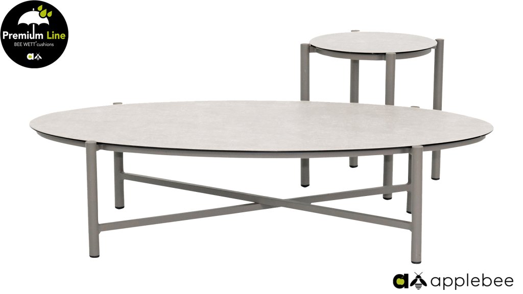 Der Apple Bee Bora Bora Couchtisch-Set, dessen Gestell aus Aluminium in der Farbe Taupe besteht. Die Platte ist aus Keramik in der Farbe Travetino White, daher sehr pflegeleicht. Dieses Kaffeetisch-Set ist dazu gedacht, mit der Apple Bee Bora Bora Loungeset kombiniert zu werden, kann aber auch in Kombination mit anderen Lounge-Serien für einen Hauch von Eleganz sorgen. Unten finden Sie die einzelnen Kaffee- und Beistelltische: