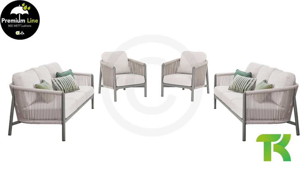 | Materialien Loungegruppe | Rope, Pulverbeschichtet Aluminium/Stahl |
