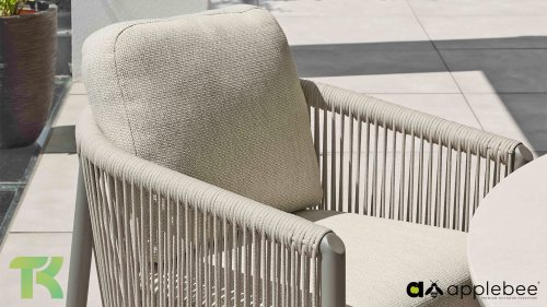 Für alle, die stilvoll speisen und entspannen möchten, ist das Bora Bora Low Dining Set genau das Richtige. Dieses Set vereint den Komfort einer Lounge-Garnitur mit der Funktionalität eines Esstisches – perfekt für lange Sommerabende im Garten. Das elegante, abgerundete Aluminiumrohrgestell ist in warmem Taupe pulverbeschichtet und verleiht dem Set eine sanfte, einladende Optik. Das zweilagige, geflochtene Seil aus Eiche sorgt für ein luftiges und modernes Ambiente, während die offene Struktur einen edlen, luxuriösen Look erzeugt.