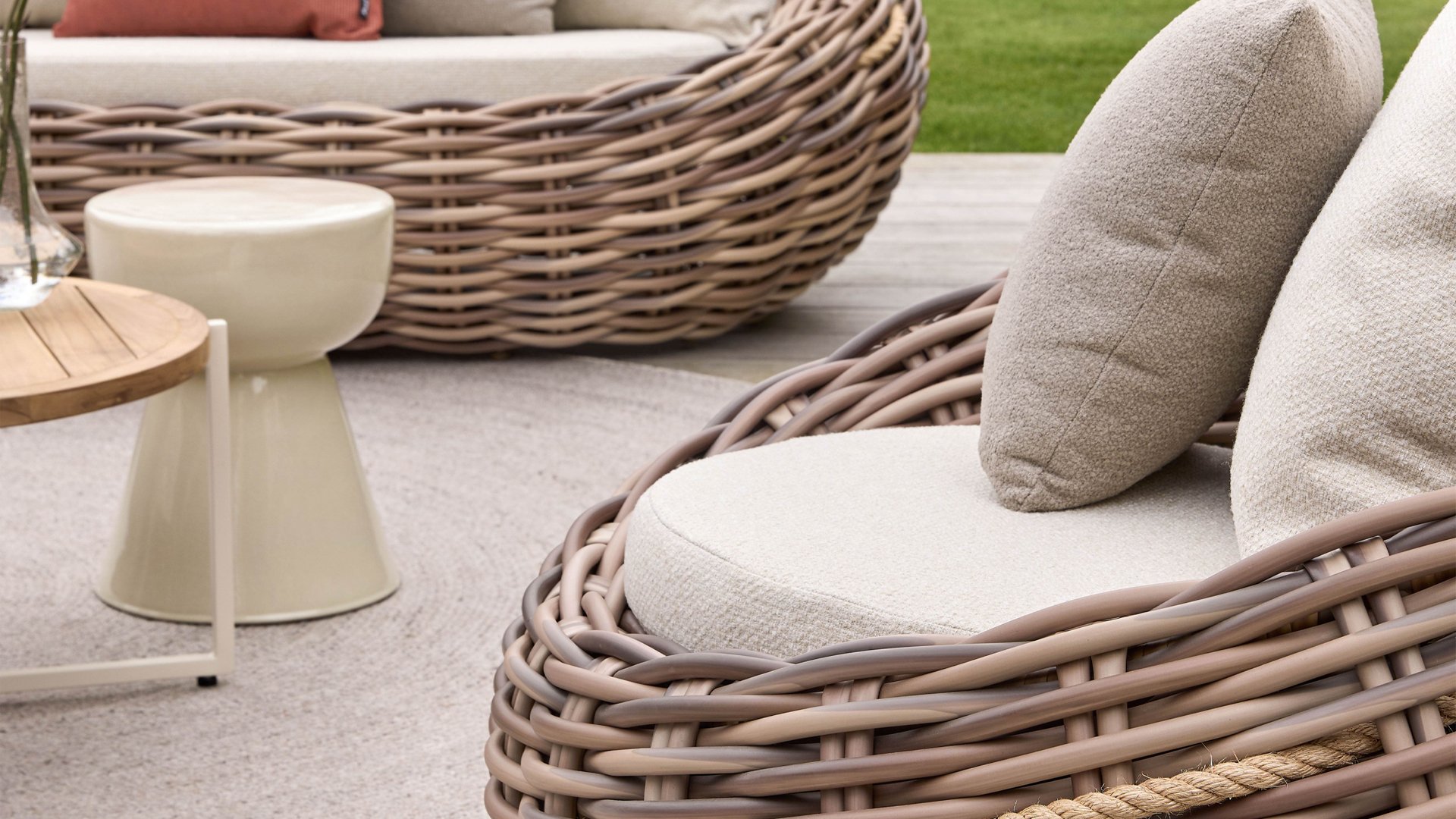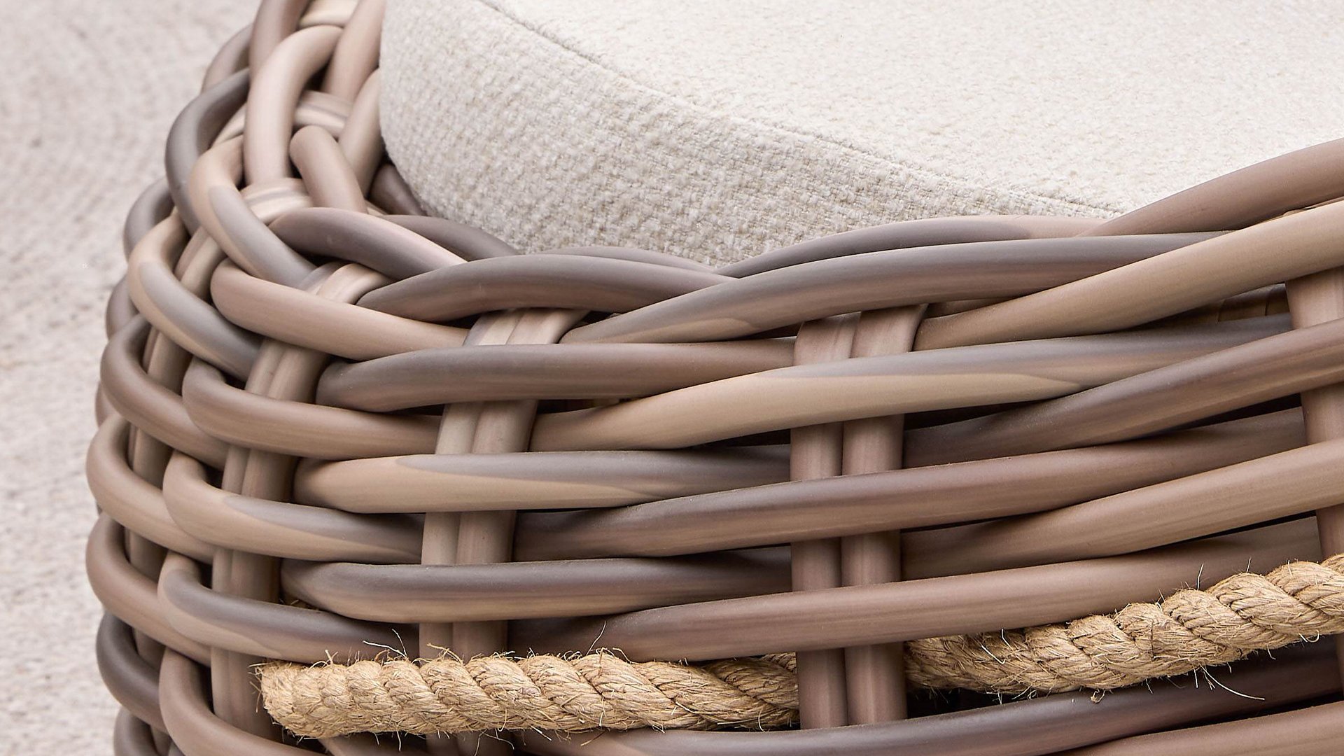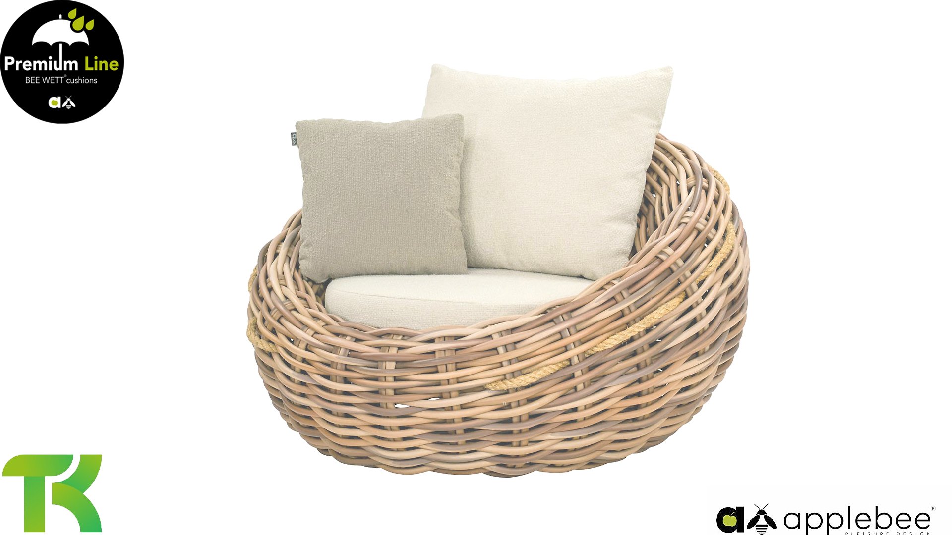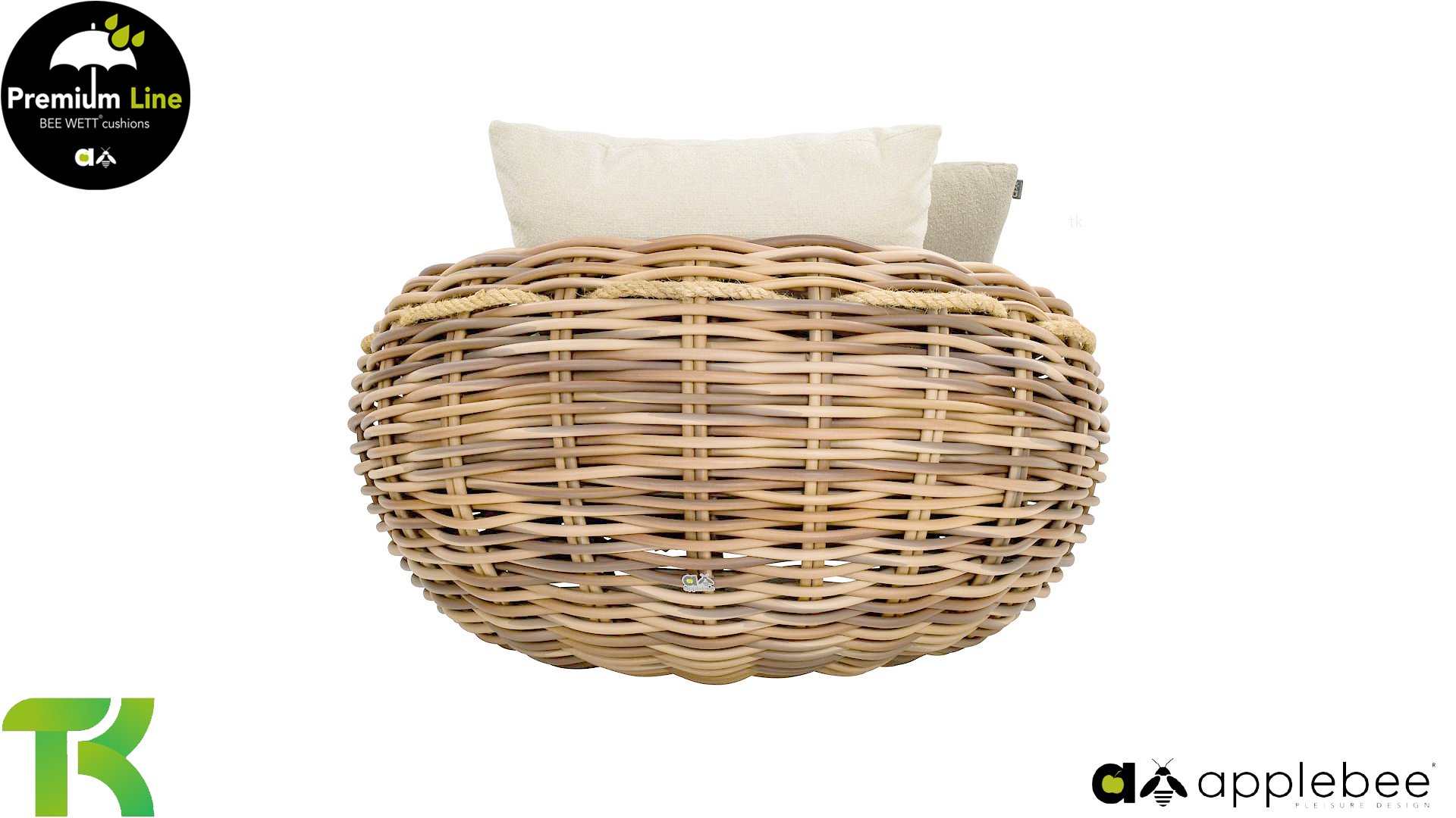 Das mitgeflochtene Sisal-Seil verleiht dem Cocoon nicht nur seinen einzigartigen Charakter, sondern ist auch sehr praktisch, um das Möbelstück leicht zu bewegen. Der Cocoon ist das Evergreen von Apple Bee!