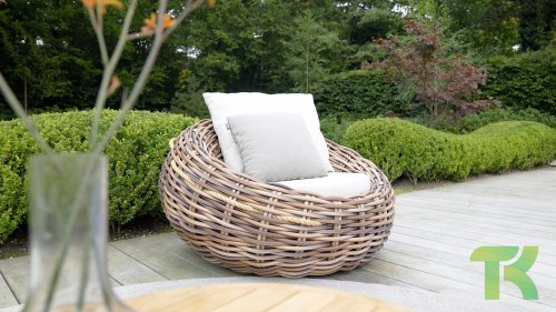 Apple Bee zeichnet sich durch die Verwendung des speziellen Biculair®-Geflechts aus, das ursprünglich für den professionellen Einsatz im Gastgewerbe entwickelt wurde. Dieses Biculair®-Geflecht ist eine naturgetreue und nachhaltige Alternative zu Rattan. Die äußerst strapazierfähige synthetische Rattanfaser (HDPE) ist absolut wetterfest, farbecht, recycelbar und somit eine umweltfreundliche Wahl. Aussehen und Funktionalität der Möbel bleiben von den europäischen Witterungsbedingungen unbeeinträchtigt, und die Farben behalten ihre natürliche Leuchtkraft. Die überlegene Qualität dieses Geflechts, bestätigt von der Niederländischen Organisation für Angewandte Naturwissenschaftliche Forschung (TNO), zeigt sich deutlich im Vergleich zu anderen vergleichbaren Materialien.