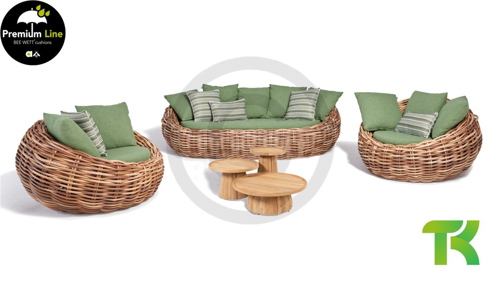 Applebee Cocoon ist inspiriert durch den sicheren Kokon, in dem sich eine Raupe geborgen fühlt und sich in einen wunderschönen Schmetterling verwandelt. Wunderschöne grüne Loungekissen – optional mit Bee-Wett®-Technologie – in Kombination mit dem außergewöhnlich dicken geflochtenen Biculair®-Flechtfaden in 20mm Stärke.