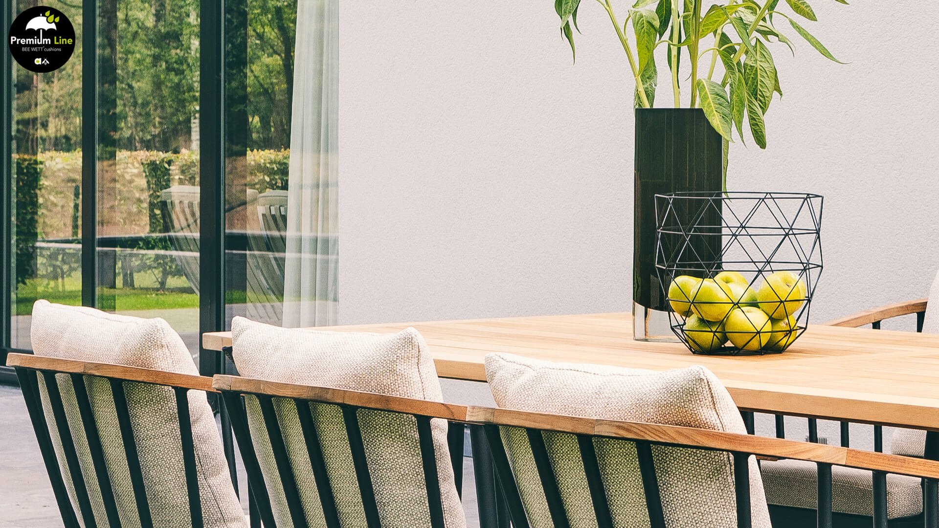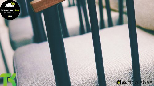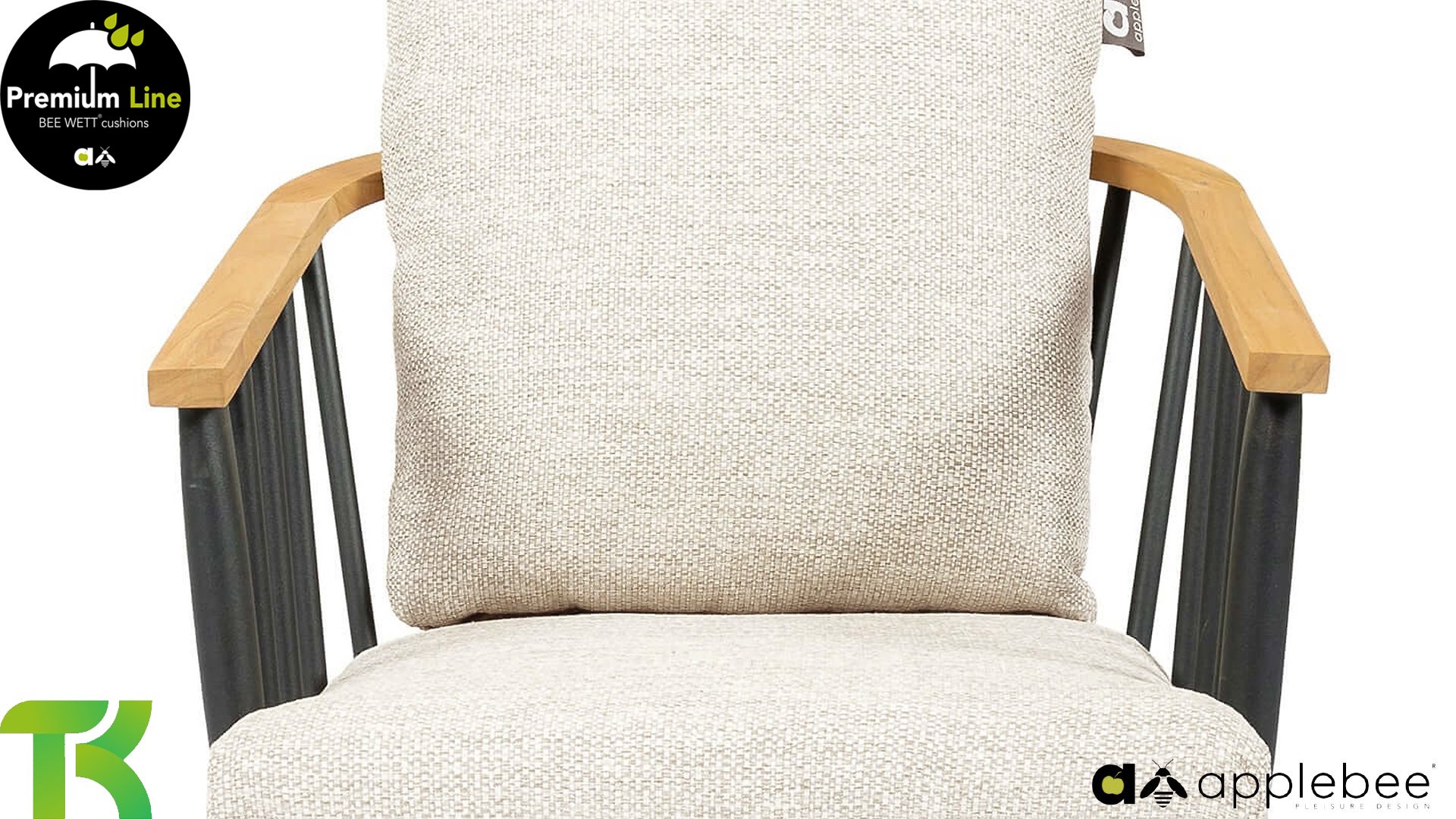 Apple Bee Möbel werden hergestellt aus den besten Materialien. Das gilt ebenso auch für die Kissen und Polster. Bee Wett sind spezielle wetterfeste Kissen die natürlich draussen liegen bleiben können. Die abnehmbaren Hüllen werden aus den bestenmöglichen Stoffen hergestellt und sind alle waschbar. Der Stoff ist zusätzlich wasserabstoßend und garantiert UV-beständig. Anders als bei dem gewöhnlichen Schaum nimmt die einzigartige Bee Wett Füllung keine Feuchtigkeit mehr auf. Eine offenes Gewebe an der Unterseite der Kissen sorgt für eine perfekte Drainage. Der Vorteil, dass die Bee Wett Kissen und Polster unglaublich viel schneller trocknen als vergleichbare andere Kissen. Das Bee Wett-Kissen wird mit einem Olefin Stoff bezogen, der eine gute Beständigkeit gegen Verfaulen und Stockflecken aufweist, und darüber hinaus UV-beständig, weich, komfortabel und feuchtigkeitsabstoßend ist.