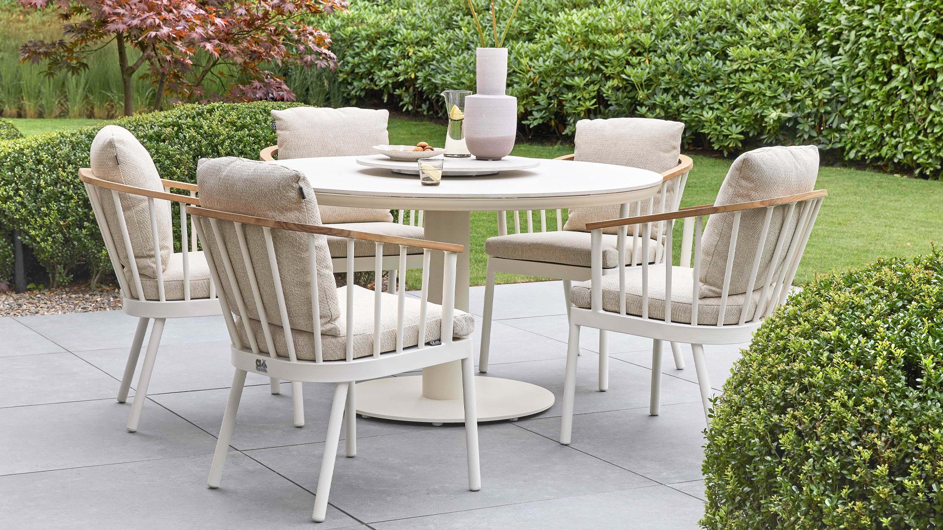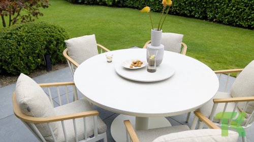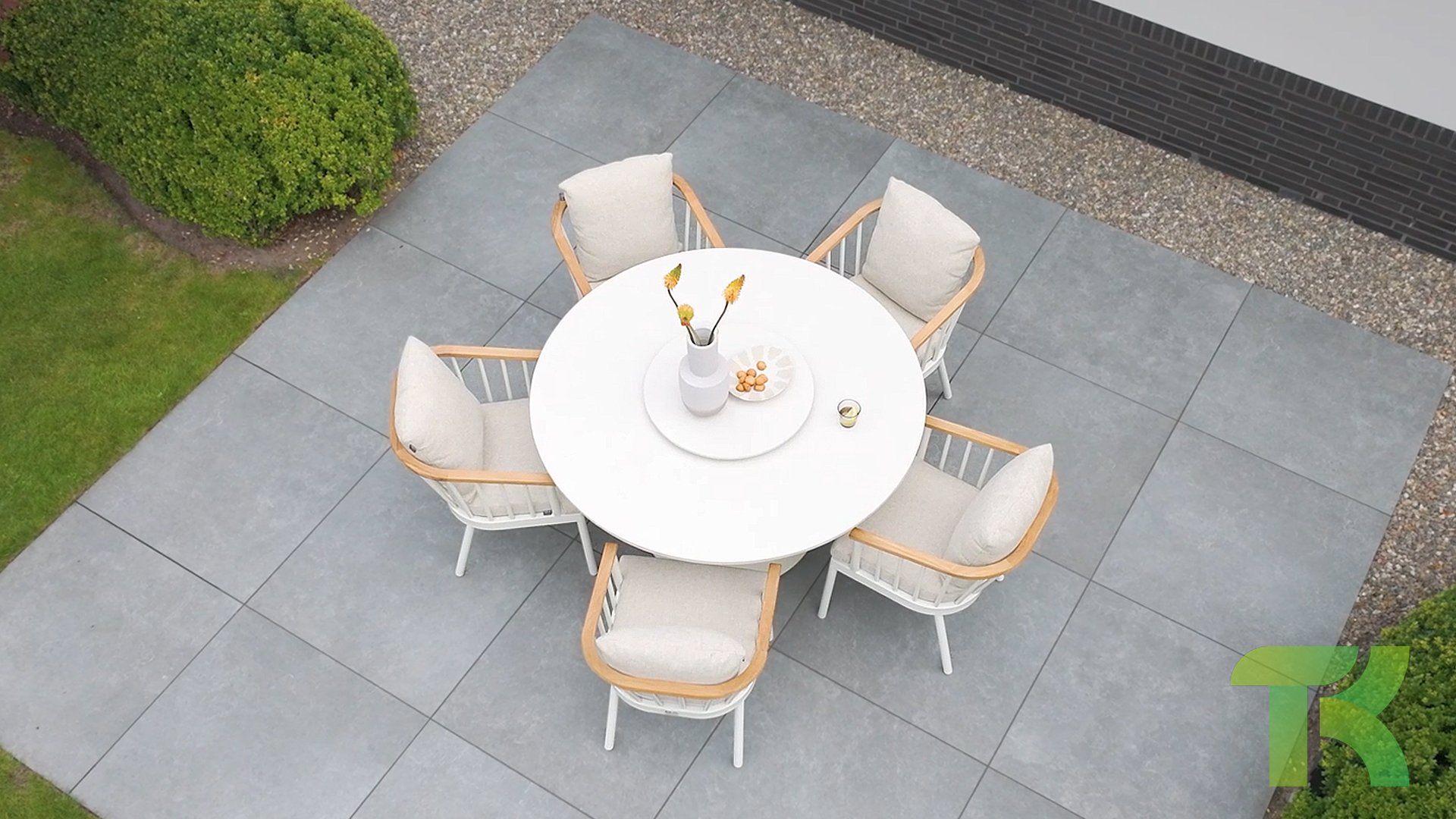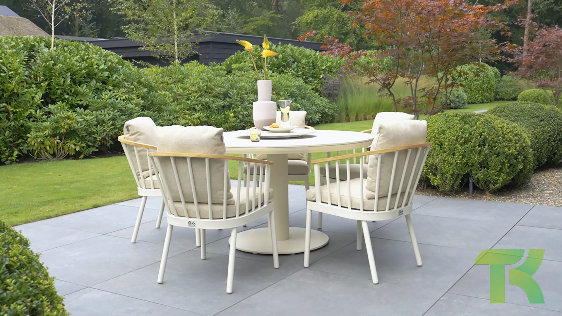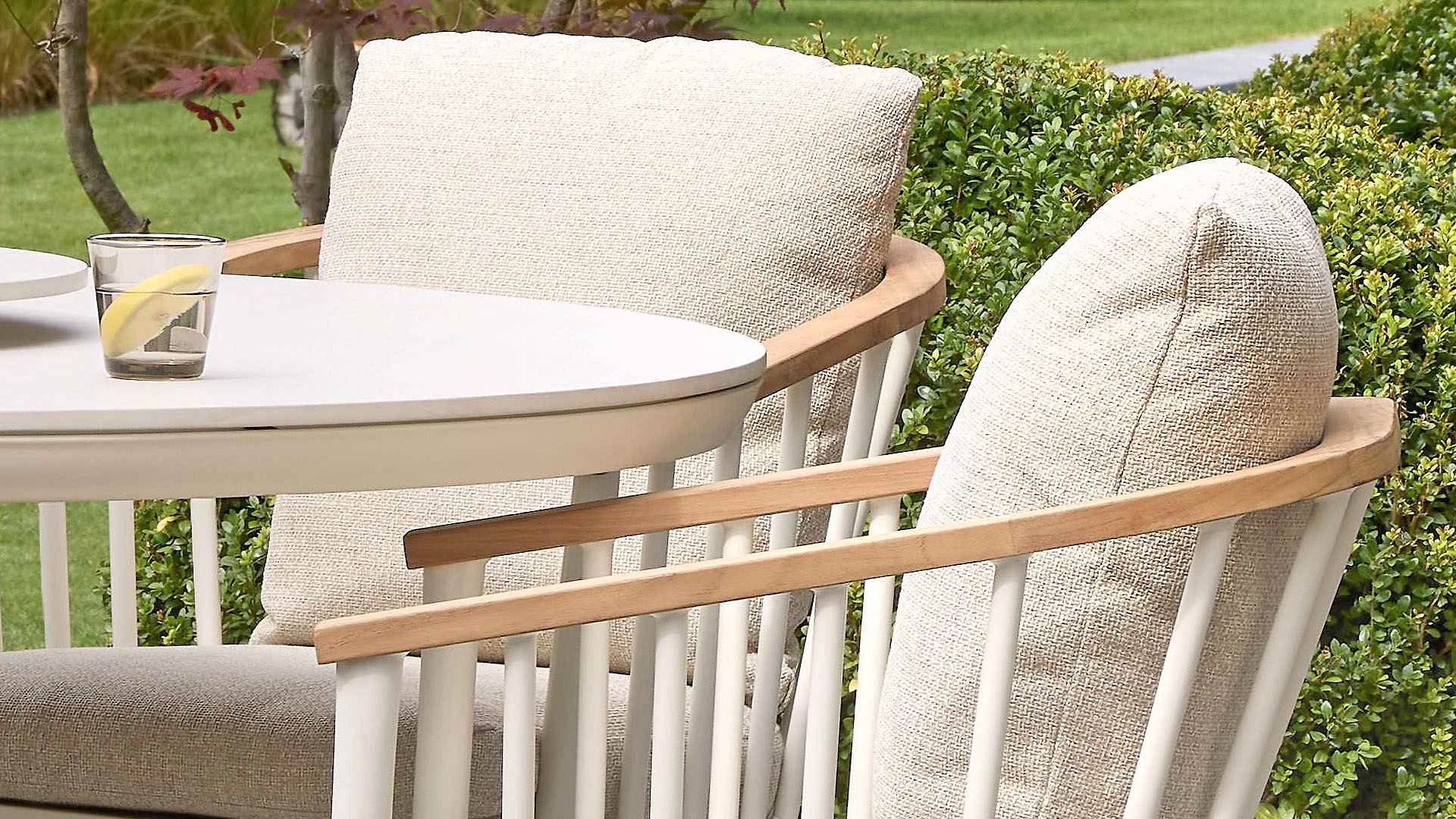 Der Stuhl wird mit einem Kissensatz in der Farbe Cotton Flower geliefert, einem sanften Beigeton, der perfekt zu den dezenten Farben des Gestells und des Teakholzes passt. Die BEE WETT®-Kissen haben einen wunderbaren Soft-Touch für optimalen Komfort. Der Condor Gartenstuhl ist Teil einer vielseitigen Serie, die verschiedene Kombinationen ermöglicht. Sie können wählen aus: Condor Oyster Dining-Set, Condor Oyster Lounge-Set, Condor Black Dining-Set und dem Condor Black Lounge-Set, sodass Sie den Stil Ihres Außenbereichs ganz nach Ihren Wünschen gestalten können.