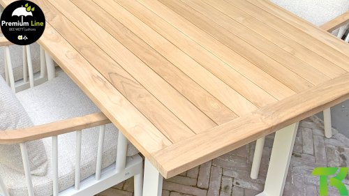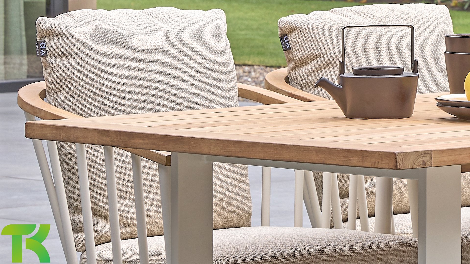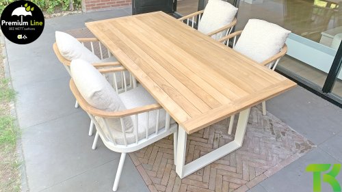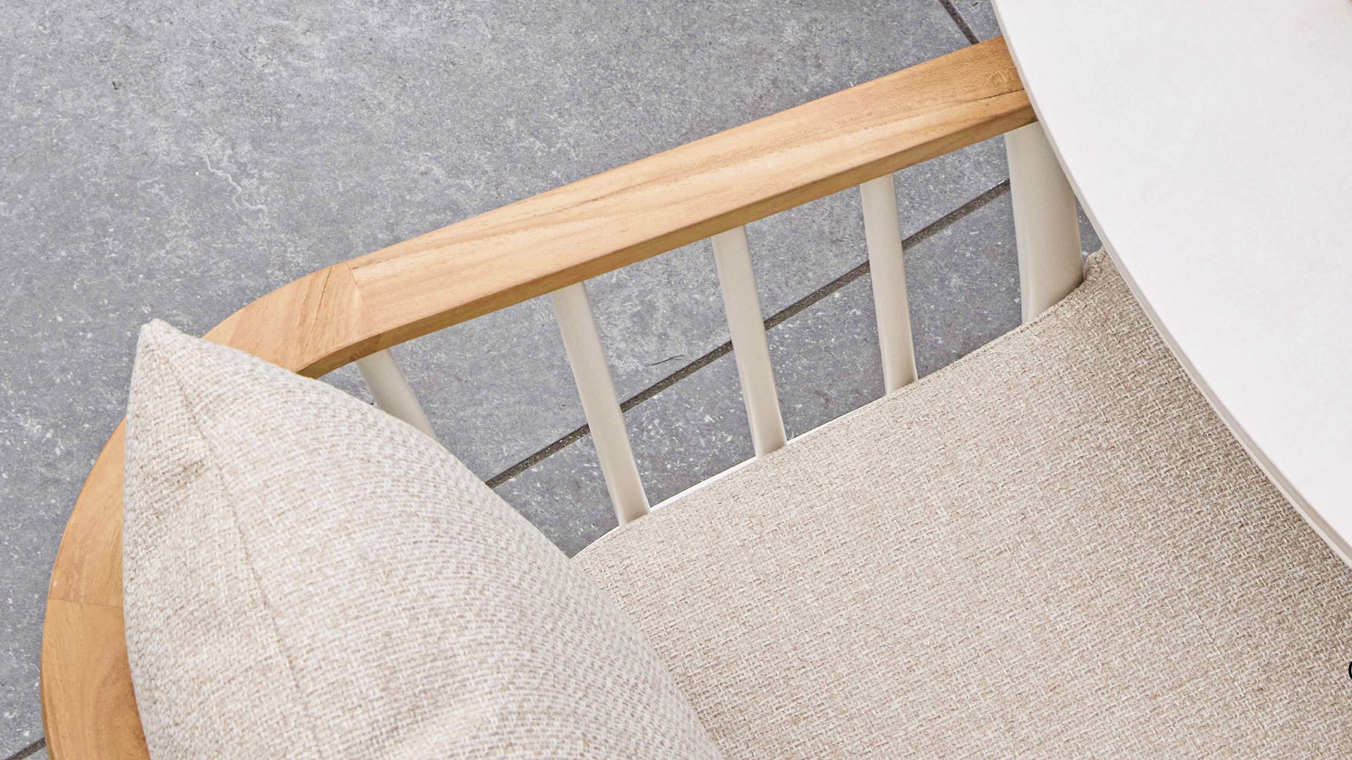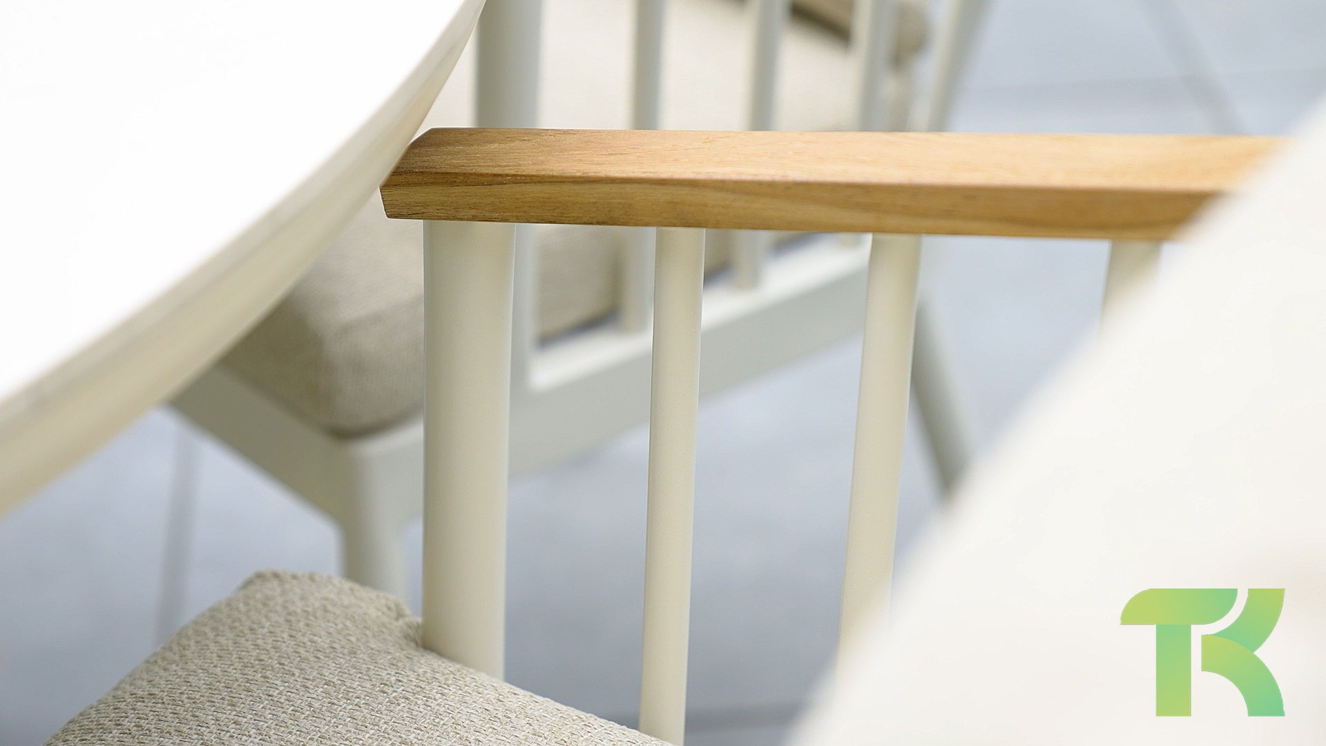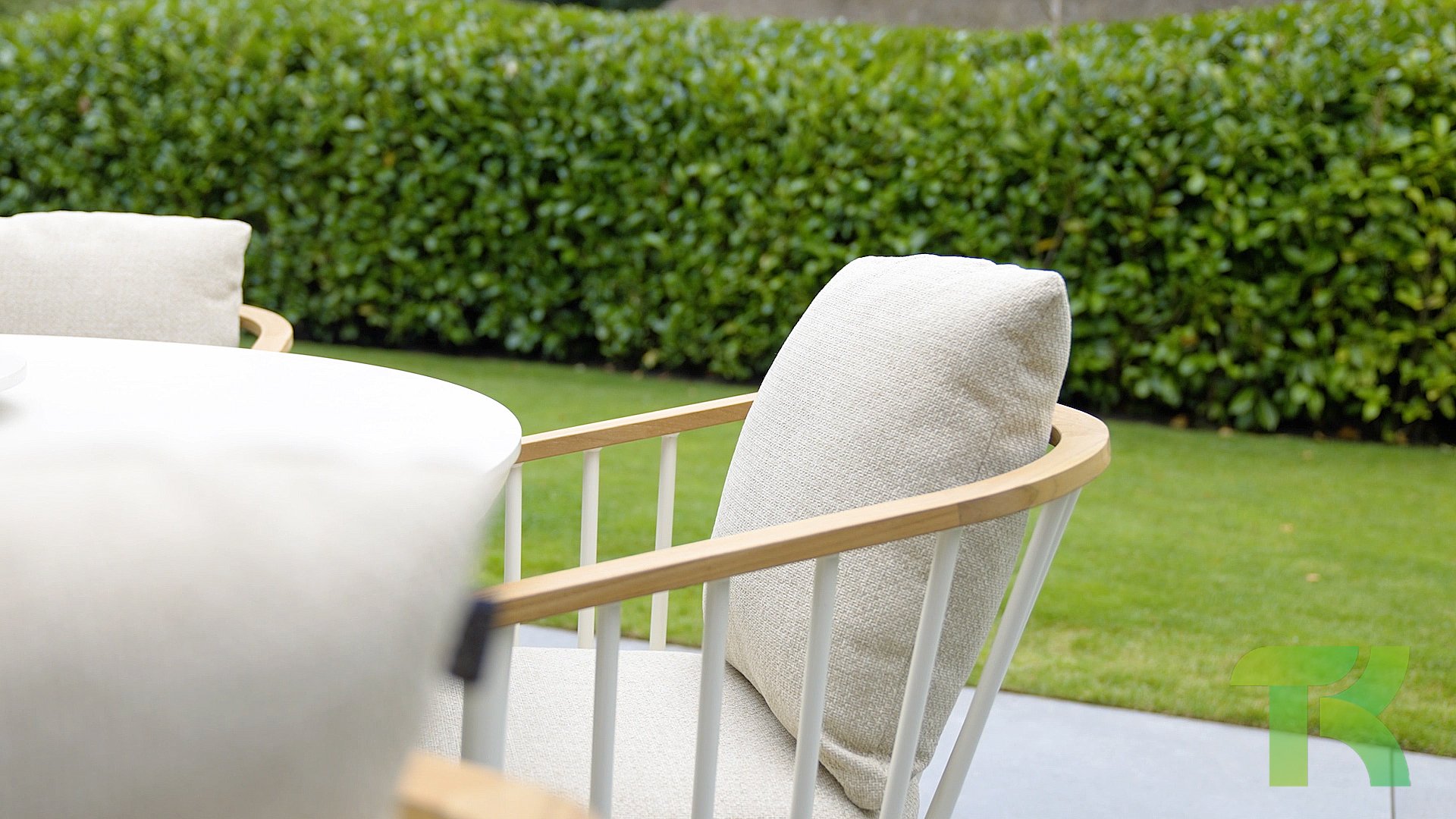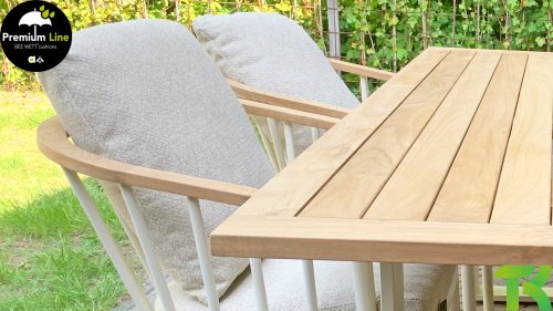 • Bequeme Armlehnen: Die Armlehnen aus Teakholz bieten sowohl Stil als auch Komfort, perfekt zum Entspannen.
