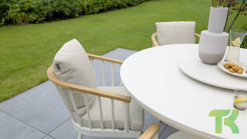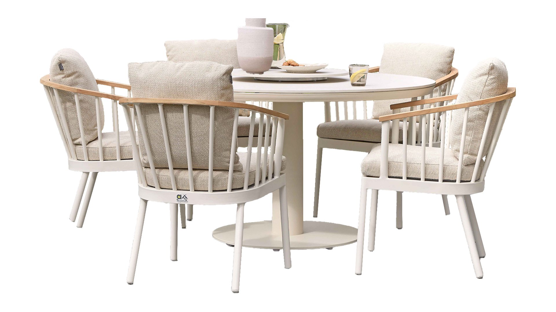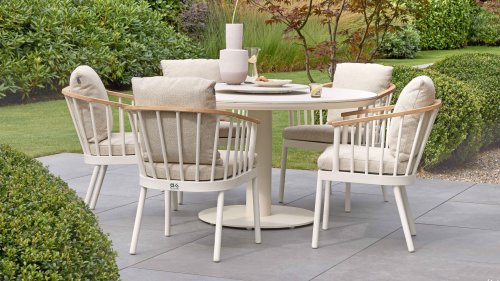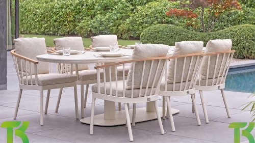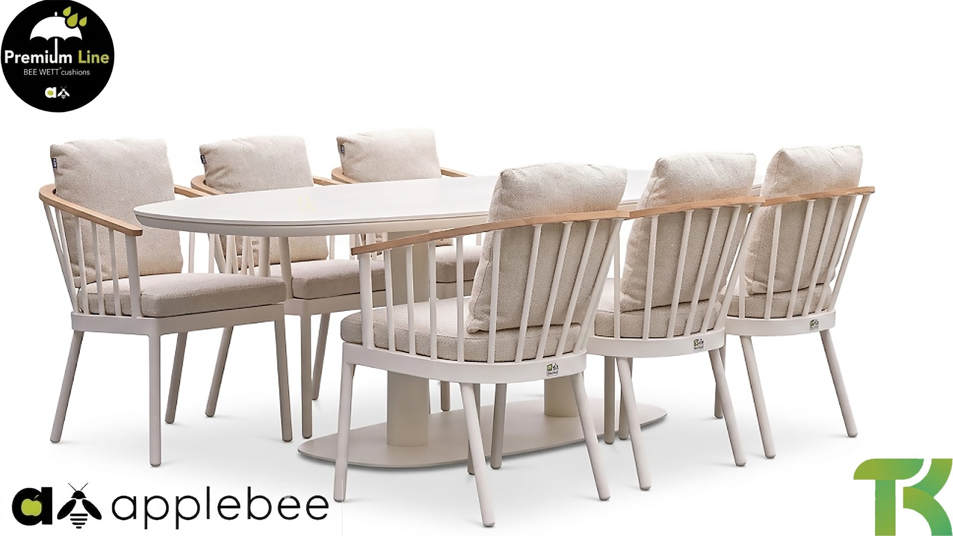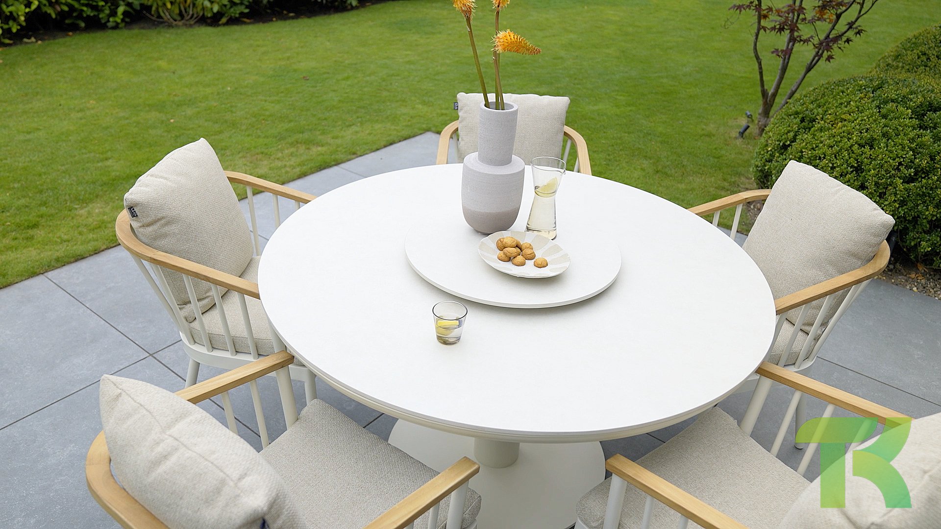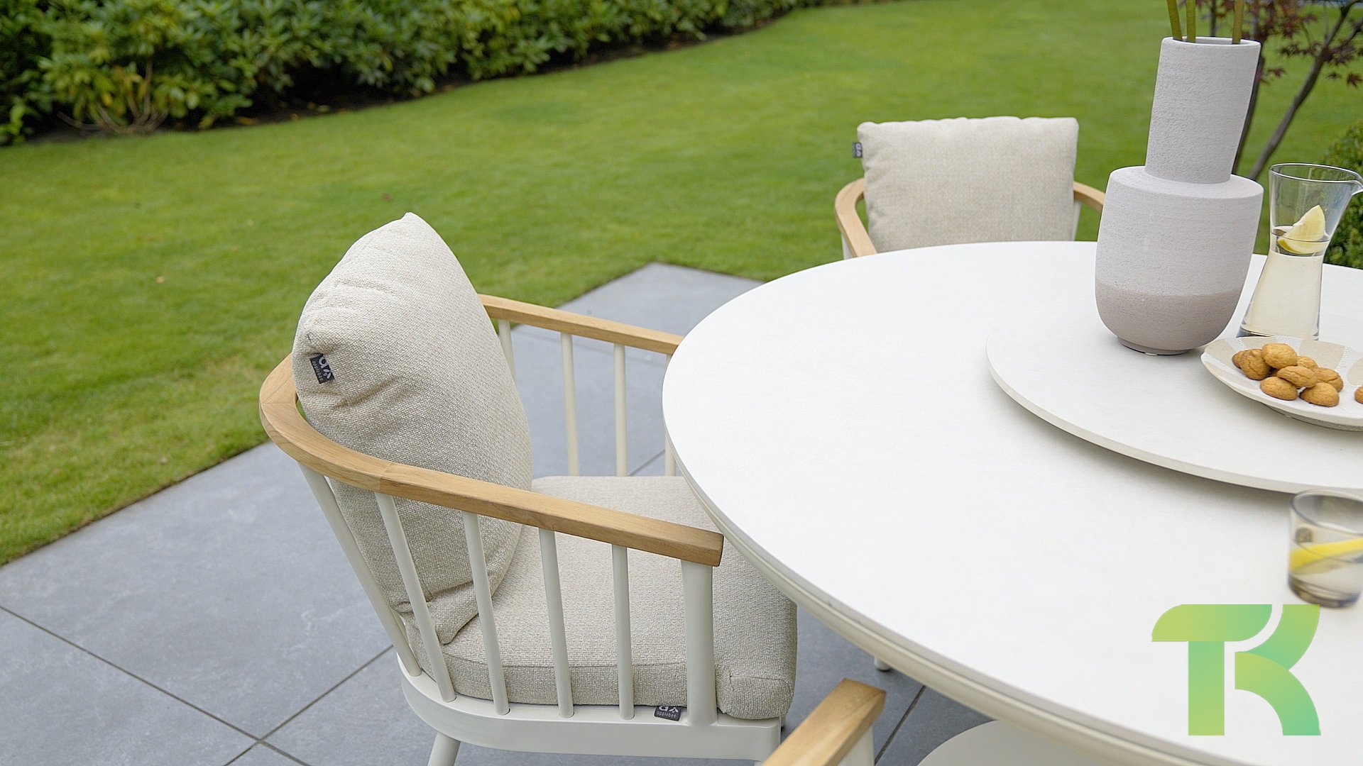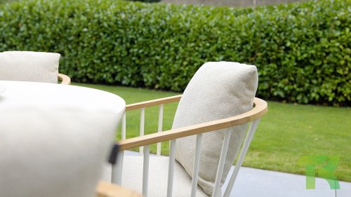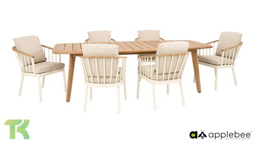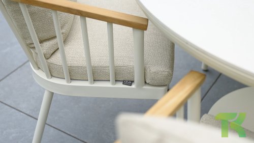Der Apple Bee Condor Gartenstuhl ist eine stilvolle und bequeme Wahl für den Garten. Dieser Gartenstuhl zeichnet sich durch das elegante Gestell in der Farbe Oyster aus, das ihm ein edles Aussehen verleiht. Das Gestell ist nicht nur modern, sondern auch robust und langlebig, ideal für den Außenbereich. Die Armlehnen sind aus hochwertigem Teakholz gefertigt, was nicht nur für eine warme, natürliche Optik, sondern auch für zusätzlichen Komfort sorgt. Die runde Rückenlehne trägt zum ergonomischen Design bei und bietet angenehmen Halt, sodass Sie stundenlang in Ihrem Garten entspannen können.