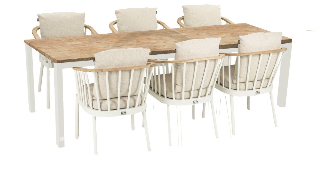 Gartenmöbel aus Teakholz bieten einen atemberaubenden Blick.Teakholz eignet sich besonders gut für den Einsatz im Außenbereich. Es ist resistent gegen Schädlinge und Pilze und widerstandsfähig gegen Sonne, Regen und Schnee. Mit der Zeit entwickelt das Teakholz eine silbergraue Patina. Gartenmöbel aus Teakholz bieten einen atemberaubenden Blick. Darüber hinaus ist es starkes Material und erfordert nur wenig Wartung. Wer die ursprüngliche Farbe des Teakholzes bevorzugt, kann durch regelmäßiges benutzen unser Pflegemittel ganz einfach das Vergrauen des Holzes verhindern.Darüber hinaus können Sie Teak mit grüner Seife reinigen. Durch Temperaturunterschiede und durch den Wechsel von Feuchtigkeit und Trockenheit können kleine Haarrisse entstehen. Es ist üblich, dass Man in dies Unvollkommenheiten findet, diese Unregelmäßigkeiten sind kennzeichnend für dieses Produkt. Diese Unregelmäßigkeiten können nie einen Anlass zu Reklamation, Garantie oder Claim formen. Es betrifft eine Unterschrift von Originalität!  Wir gewähren Garantie auf alle Produktions- und Konstruktionsfehler. Die Wirkung von Teakholz ist nicht enthalten. Wenn Sie sich für Teakholz entscheiden, erwarten wir, dass Sie diese Eigenschaften zu schätzen wissen. Eventuell auftretende Haarrisse, Äste im Teakholz und raue Oberflächen im Laufe der Zeit fallen nicht unter unsere Garantie. Diese Eigenschaften verleihen dem Teakholz seinen eigenen Charakter und sind Teil der Optik. Seien Sie vorsichtig mit einem Blumentopf oder einer Vase auf Ihrem Gartentisch aus Teakholz, da dies zu hartnäckigen Kreisen oder Farbunterschieden führen kann.