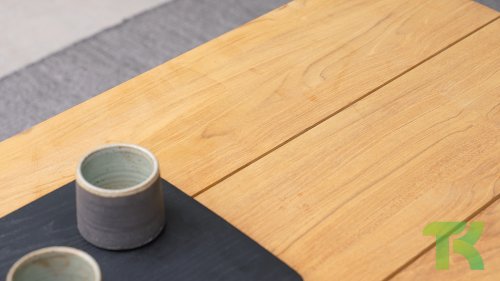 Die Dolce-Kollektion ist eine Schönheit aus natürlichem Teakholz, dessen Design die gleichen abgerundeten Linien aufweist wie der Rest des Sets.