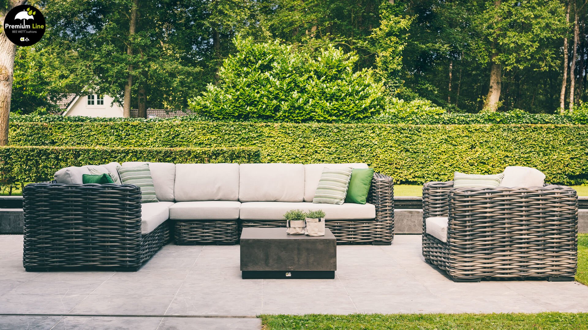 Die Apple Bee Elements XL Kollektion ist ein typisches Beispiel für zeitloses Design, das auf Kubismus basiert. Die aktuelle XL-Version ist mit robustem 18 mm Biculair®-Geflecht ausgestattet, was Ihrem Garten ein wunderschönes luxuriöses Aussehen verleiht.