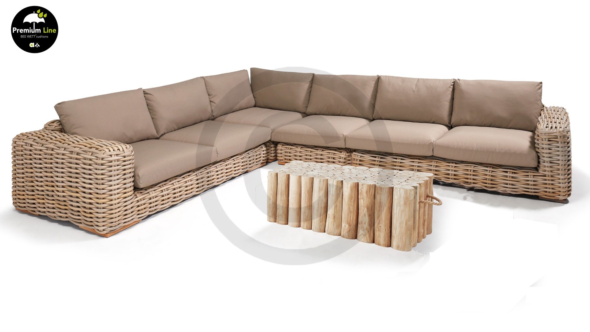 Die Apple Bee FFF Lounge ist großzügig geschnitten und beeindruckend: Die Sitzfläche ist fast einen Meter tief und das Geflecht aus 20 mm dickem Draht ist besonders voluminös! Dieses außergewöhnlich dicke Geflecht erfordert eine spezielle Flechttechnik, die nur von den besten Flechtern beherrscht wird. Diese Profis flechten jeden Strang einzeln von Hand. Dank der Stützkonstruktion lässt sich eine Seite der Lounge-Garnitur verlängern oder als separates Sitzelement nutzen.