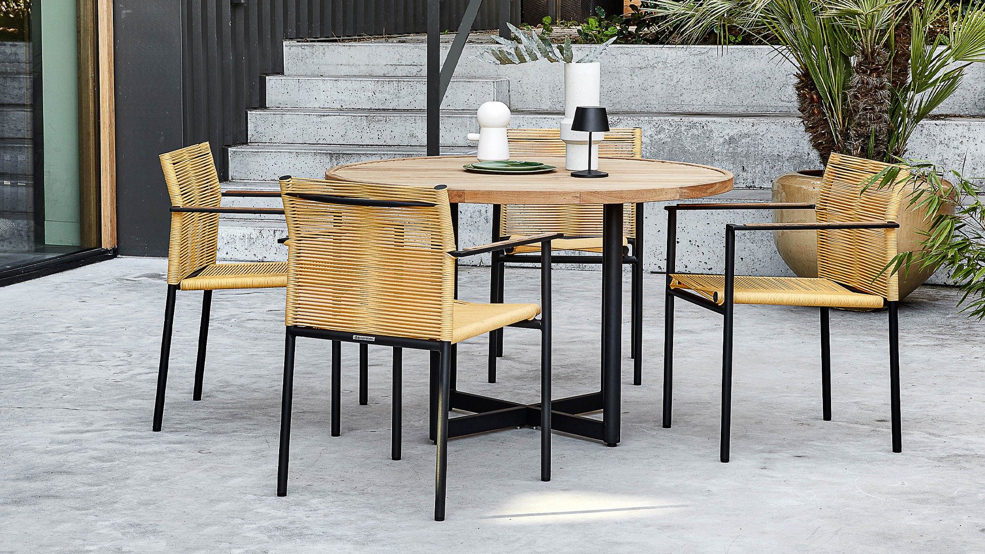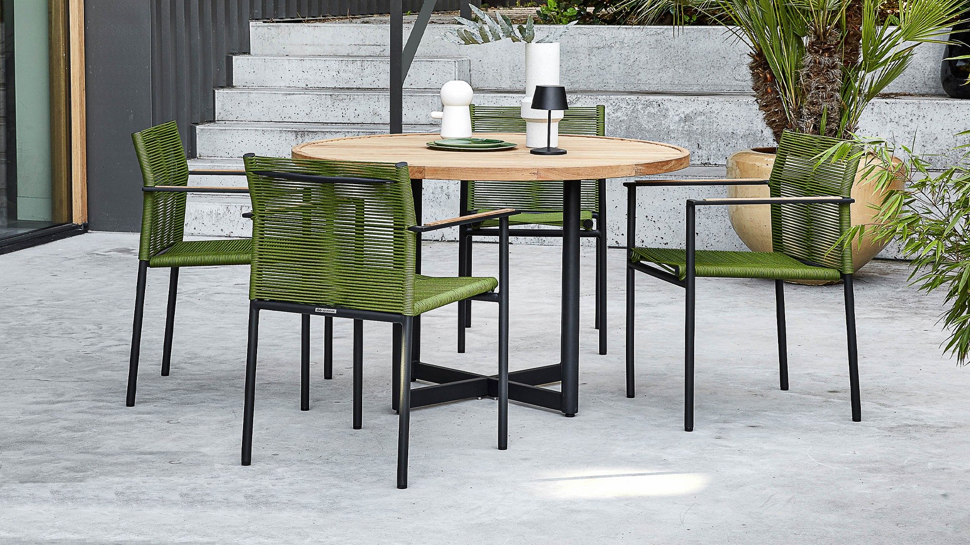 Die Seilfäden sorgen für einen wunderbaren Tragekomfort, so dass Sitzkissen nicht notwendig sind! Durch die Kombination hochwertiger Outdoor-Materialien ist dieses Gartenset witterungsbeständig und wartungsfreundlich. Das Jakarta Dining hat 2 Tischvarianten: rund und quadratisch. Die Apple Bee Jakarta Stapelstühle sind in 4 verschiedenen Farbvarianten erhältlich: Lemon, Black, Grey, Olive.