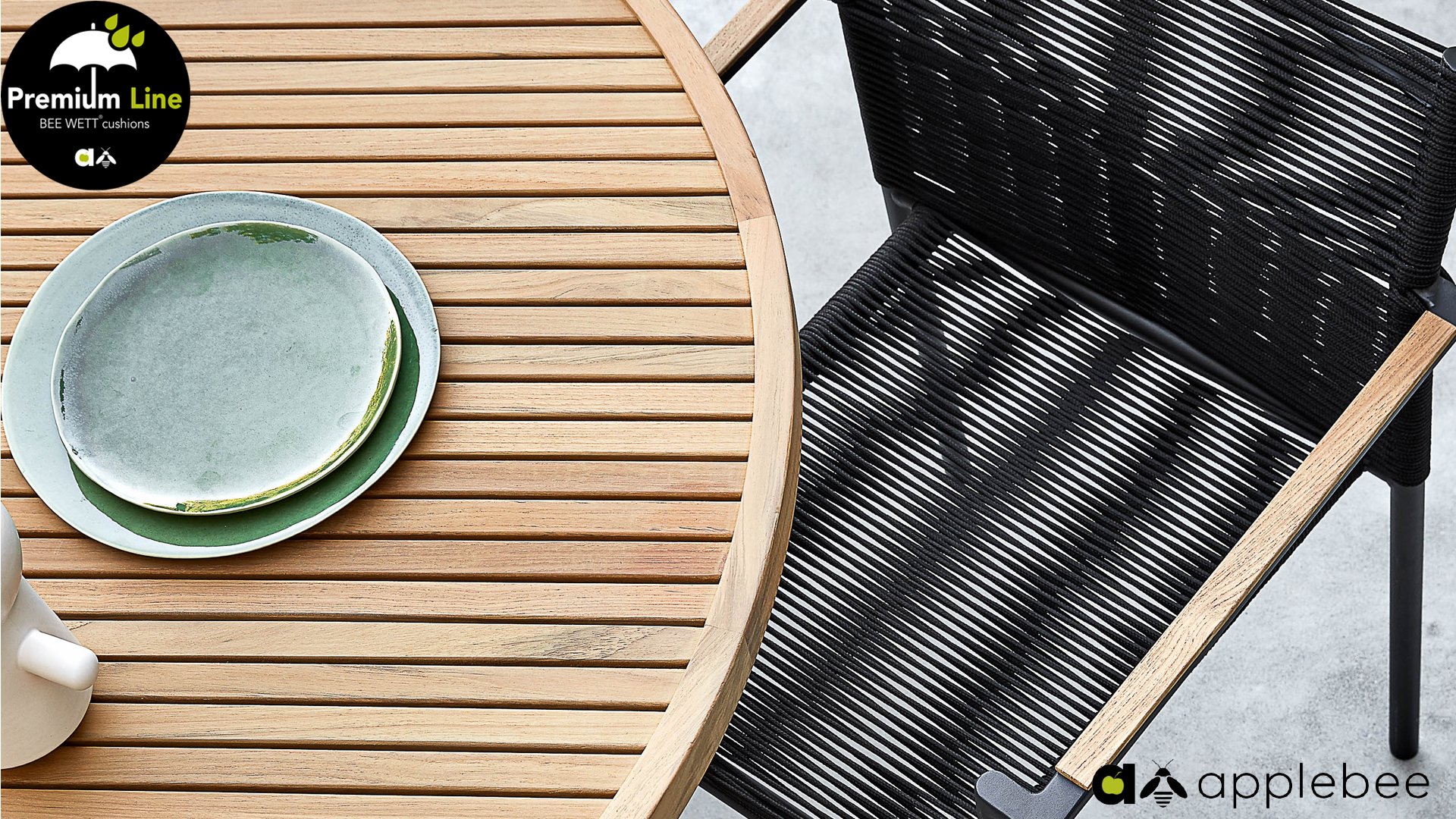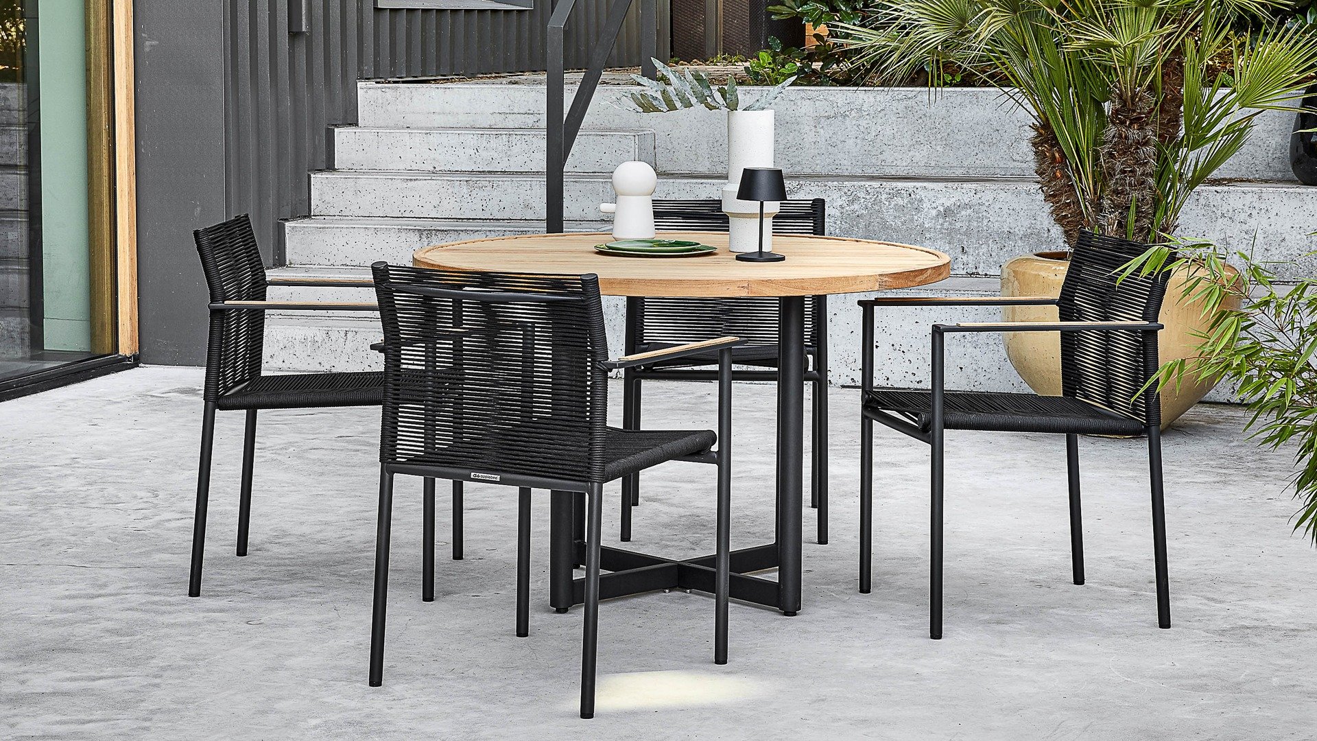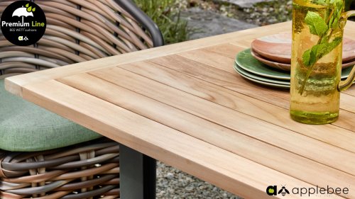 Die Apple Bee Jakarta Dining Serie besteht aus Stapelstühlen in 4 Farben in Kombination mit dem passenden Tisch in rund oder eckig. Das schwarze Gestell sorgt in Kombination mit dem Seil und dem warmen Teakholz für einen modernen Stil mit "natural touch“. Das Jakarta Dining von Apple Bee ist eine wahre Augenweide! Die schönen Rahmen bestehen aus Aluminium mit einer schwarzen Beschichtung. In diesen Rahmen ist ein wunderschönes Seil eingewebt, das weich und angenehm aussieht. Die schönen Formen halten dieses moderne Design vollständig im Gleichgewicht. Dieses wunderschön gestaltete Gartenset von Apple Bee hat ein minimalistisches Design mit schönen Details.