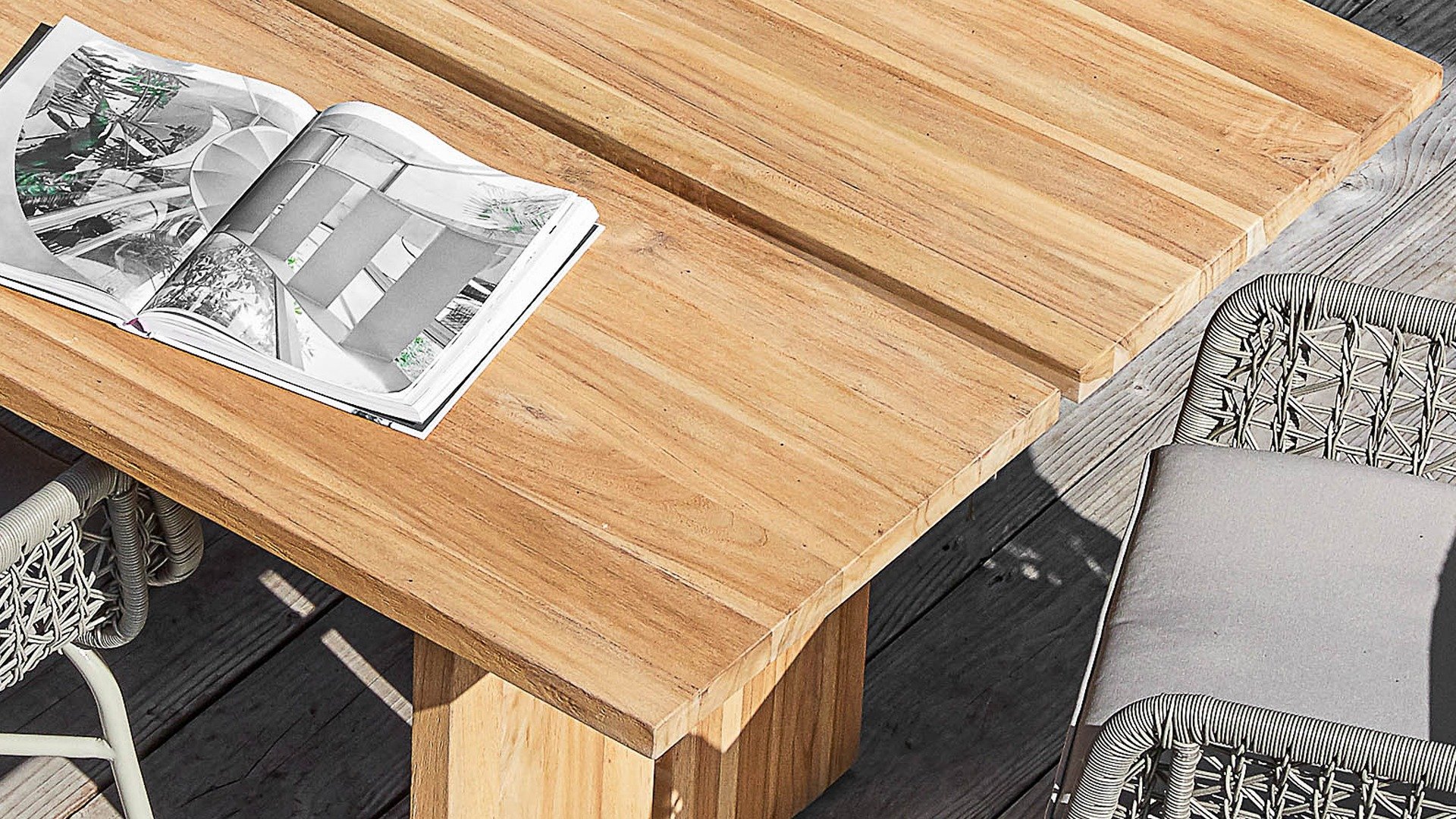 Der Gartentisch Joie de Vivre ist in 2 Längen erhältlich: 250 cm und 200cm. Der Tisch besteht aus dickem zertifiziertem Teakholz.