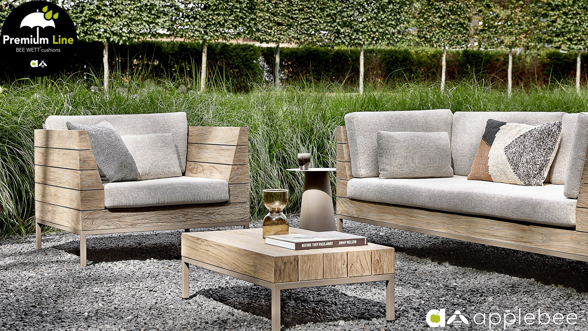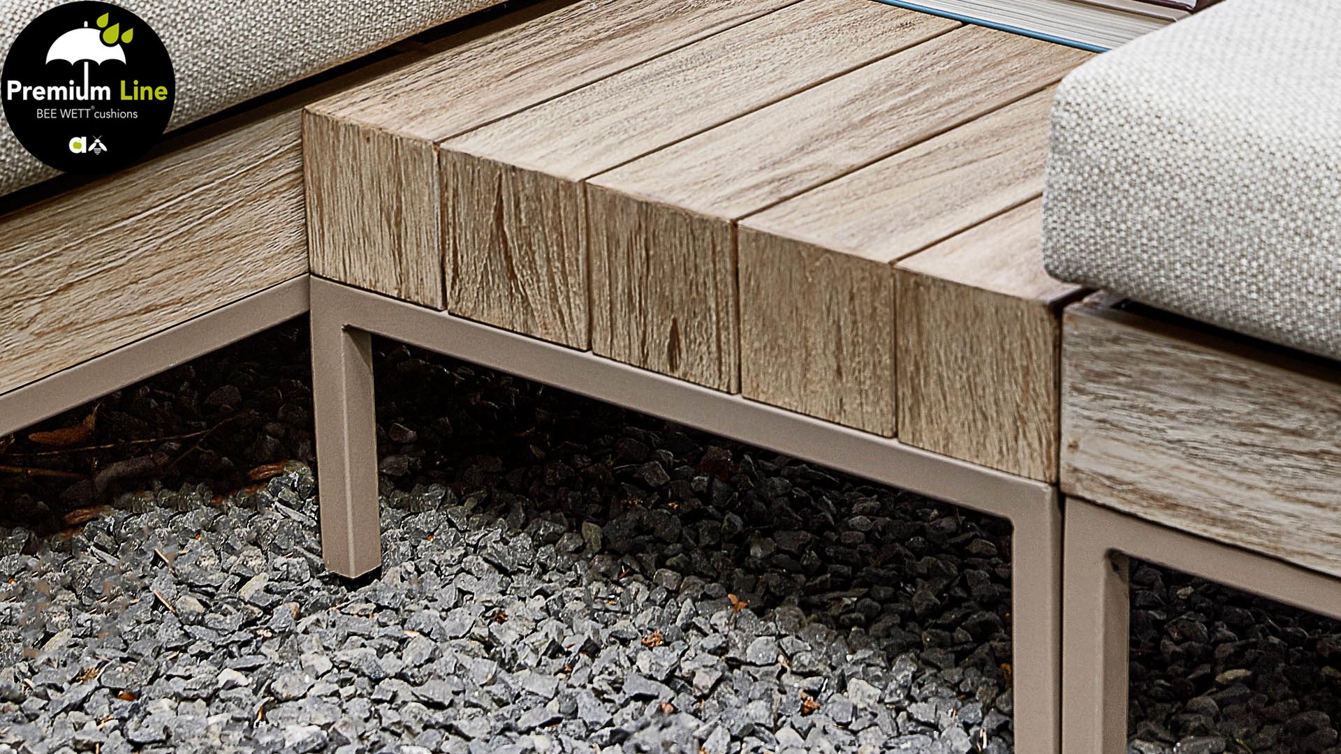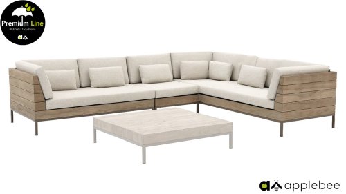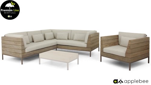 Die Natural Bee Wett Kissen machen das Ganze komplett. Optional ist der kleine Tisch aus Teakholz, der zwischen die Bänke gestellt werden kann. Um dafür zu sorgen, dass die schöne Farbe des Long Island erhalten bleibt, Benutzen Sie dann Teak Schutz, um dafür zu sorgen, dass sich das Möbel schön gleichmäßig verfärbt, ohne dass Schimmel oder Feuchtigkeit in das Holz gelangen können. Auf diese Weise bestimmen Sie selbst, welche Ausstrahlung Ihr Möbel erhält. Die All Weather Bee Wett® Kissen sind einzigartig! Das Untergestell ist aus pulverbeschichtet Aluminium. AppleBee Möbel werden hergestellt aus den besten Materialien. Das gilt ebenso auch für die Kissen und Polster.